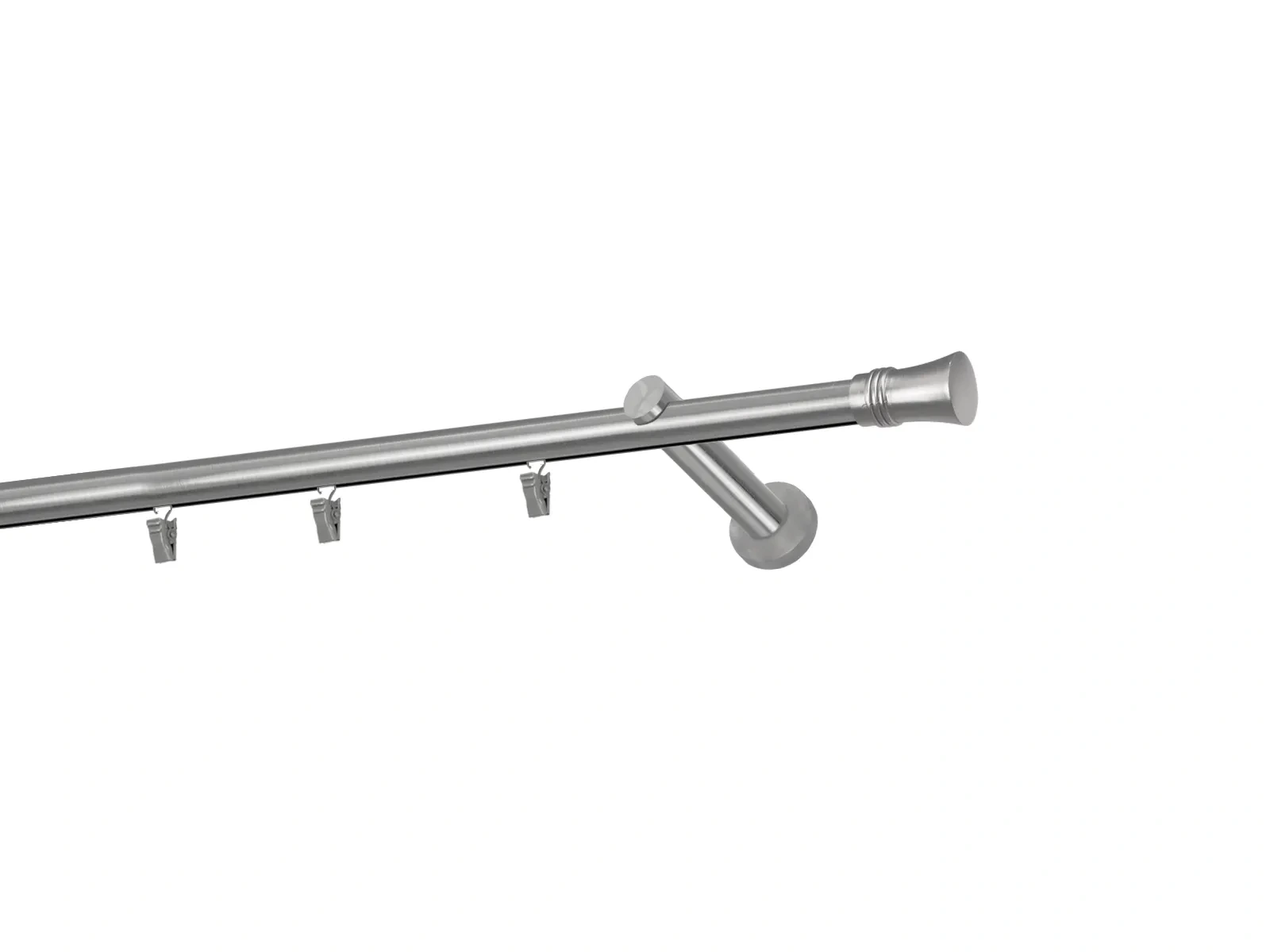 Dĺžka 1800 mm - tyč 19mm - 1800mm - 1ks, držiak - 2ks, koncovka - 2ks, krúžok so štipcom - 17ks (pri výbere parametra príslušenstvo s krúžkami so štipcom), skrutky a hmoždinky na montáž