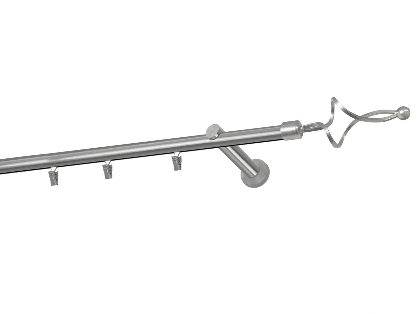 Dĺžka 1800 mm - tyč 19mm - 1800mm - 1ks, držiak - 2ks, koncovka - 2ks, krúžok so štipcom - 17ks (pri výbere parametra príslušenstvo s krúžkami so štipcom), skrutky a hmoždinky na montáž