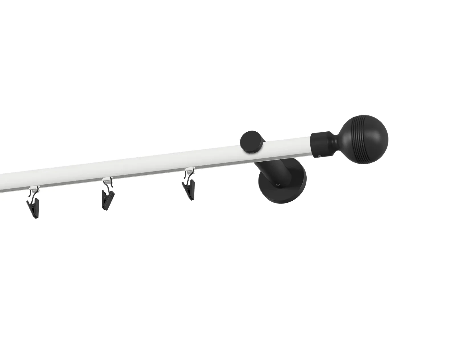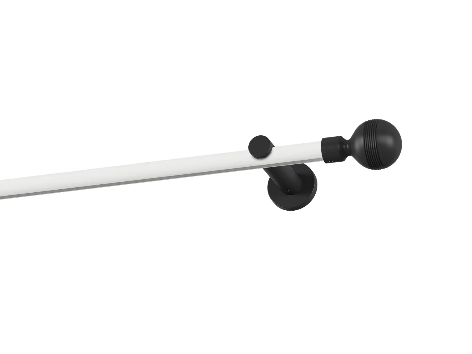 Jednoradová drážková garniža s povrchovou úpravou - bielo čierna lakovaná. Garniže sú dodávané sú v kompletoch. Tvar koncovky a typ držiaka podľa zadaného výberu.
