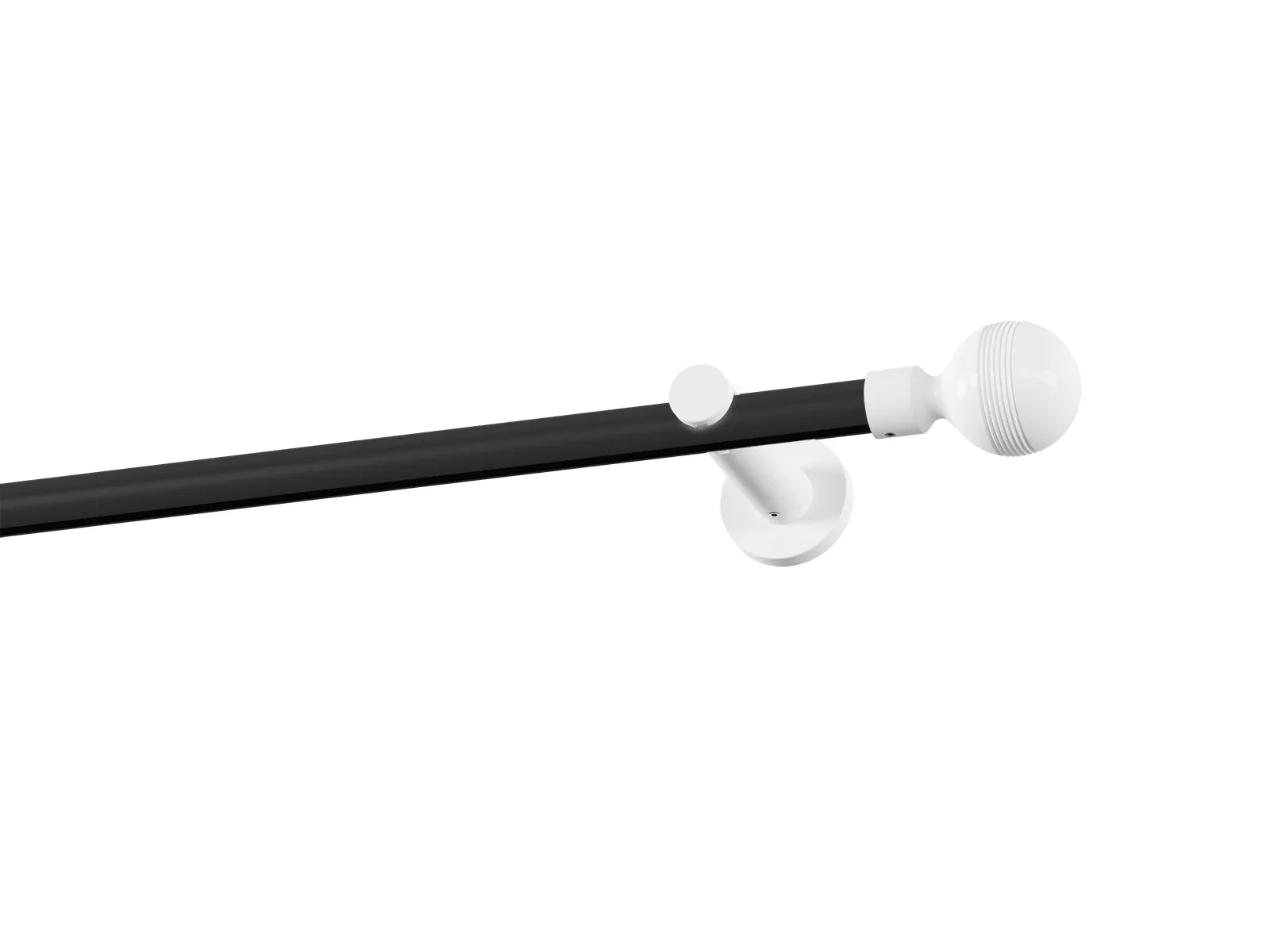 Jednoradová drážková garniža s povrchovou úpravou - čierno biela lakovaná. Garniže sú dodávané sú v kompletoch. Tvar koncovky a typ držiaka podľa zadaného výberu.