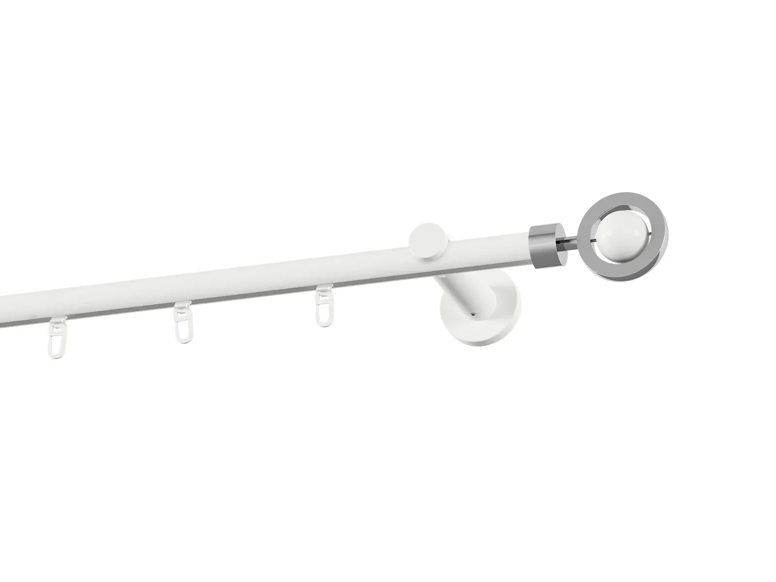 Jednoradová drážková garniža s povrchovou úpravou - biela lakovaná. Garniže sú dodávané sú v kompletoch. Tvar koncovky a typ držiaka podľa zadaného výberu.