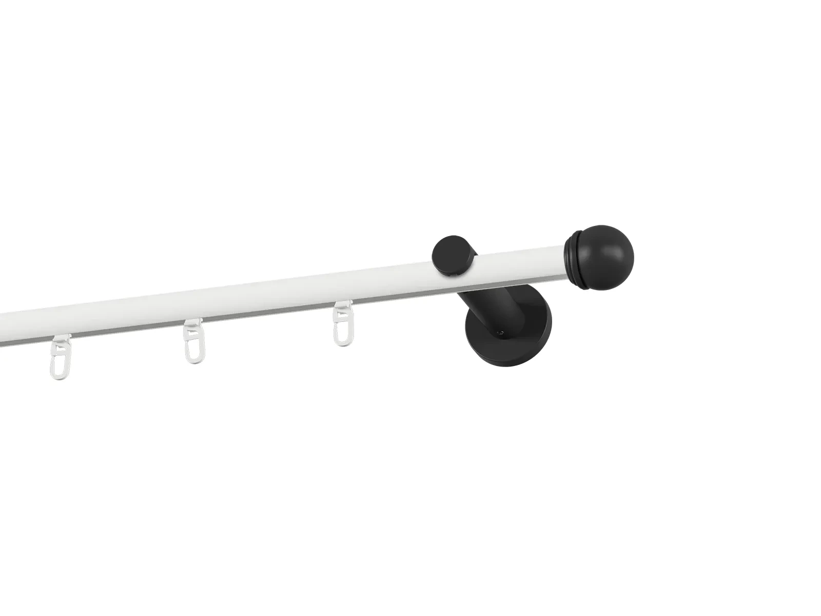 Jednoradová drážková garniža s povrchovou úpravou - bielo čierna lakovaná. Garniže sú dodávané sú v kompletoch. Tvar koncovky a typ držiaka podľa zadaného výberu.