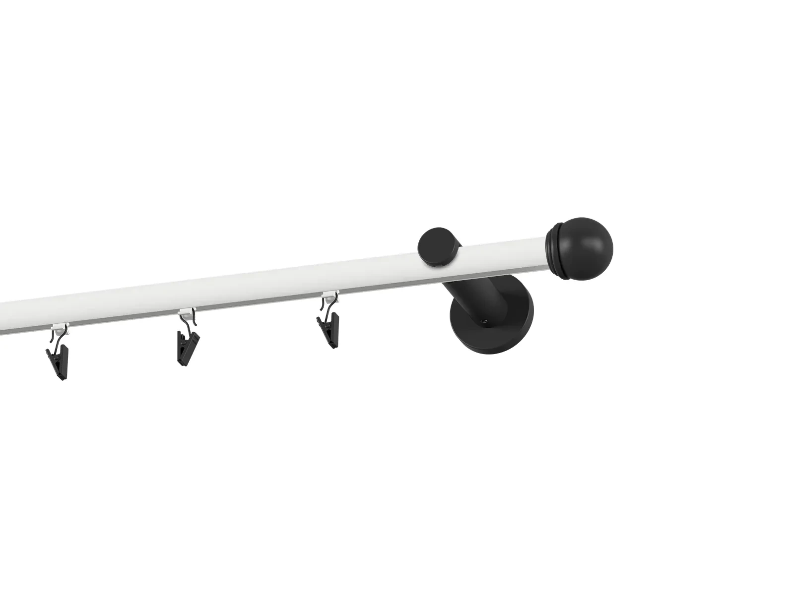 Dĺžka 3200 mm - tyč 19mm - 1600mm - 2ks, spojka tyče – 1 ks, držiak - 3ks, koncovka - 2ks, krúžok so štipcom - 30ks (pri výbere parametra príslušenstvo s krúžkami so štipcom), skrutky a hmoždinky na montáž
