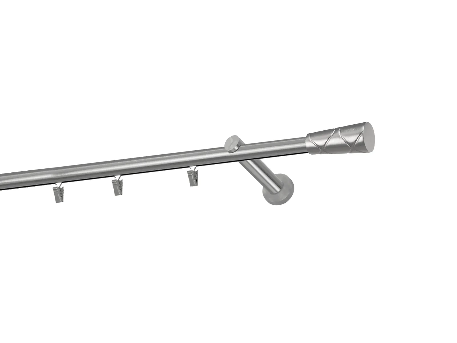 Dĺžka 1800 mm - tyč 19mm - 1800mm - 1ks, držiak - 2ks, koncovka - 2ks, krúžok so štipcom - 17ks (pri výbere parametra príslušenstvo s krúžkami so štipcom), skrutky a hmoždinky na montáž