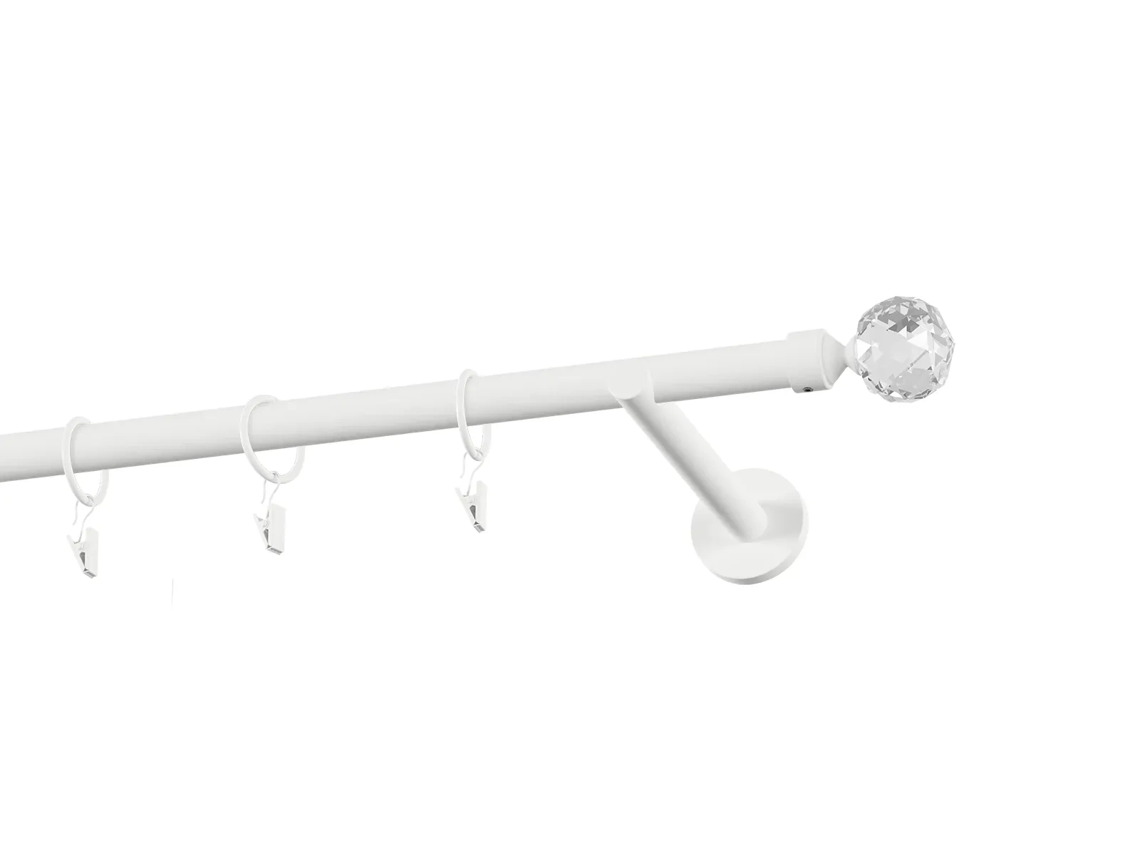 Jednoradová garniža s povrchovou úpravou - biela lakovaná. Garniže sú dodávané sú v kompletoch. Tvar koncovky a typ držiaka podľa zadaného výberu.