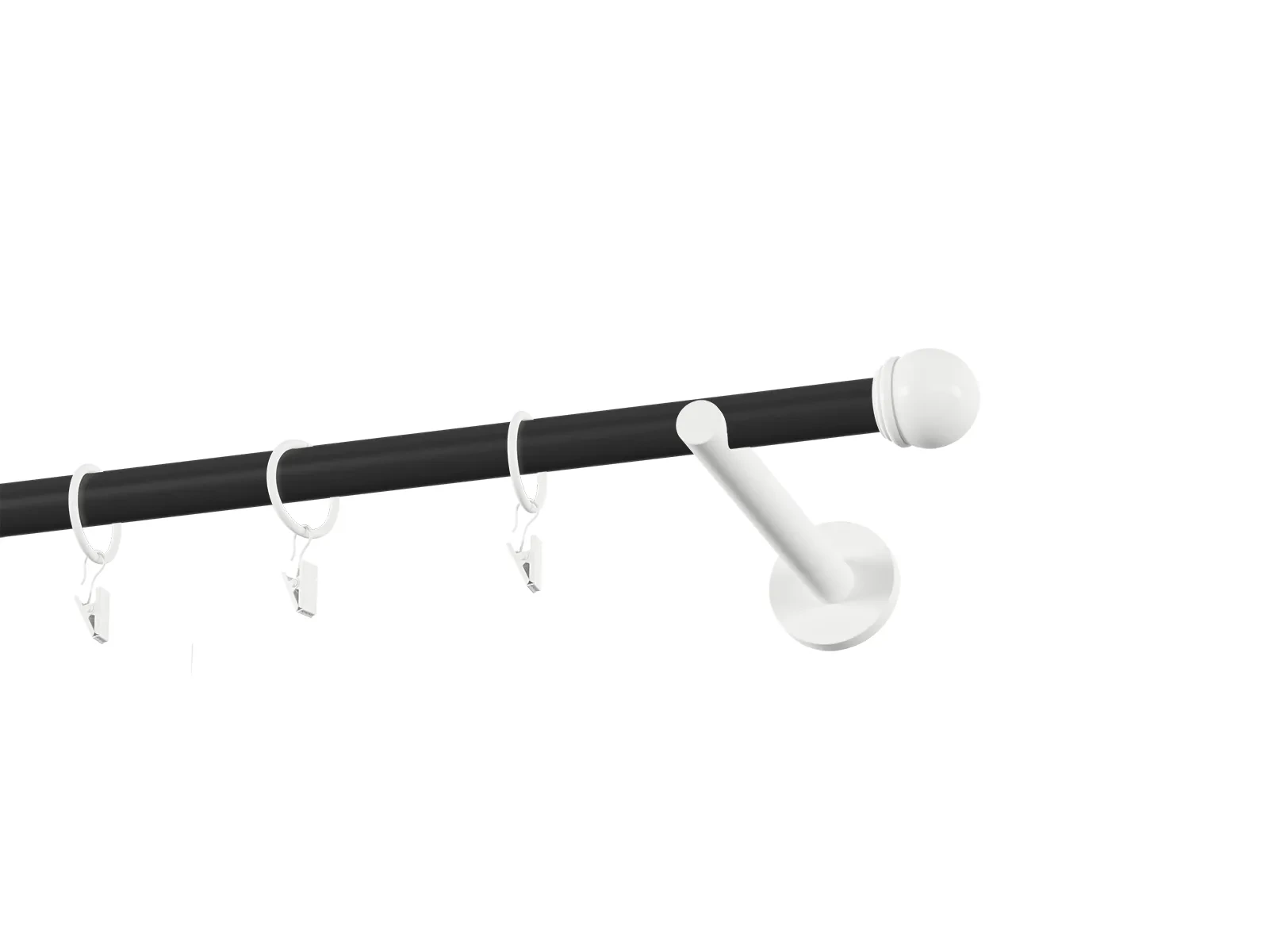 Dĺžka 1800 mm - tyč 19mm - 1800mm - 1ks, držiak - 2ks, koncovka - 2ks, krúžok so štipcom - 17ks (pri výbere parametra príslušenstvo s krúžkami so štipcom), skrutky a hmoždinky na montáž