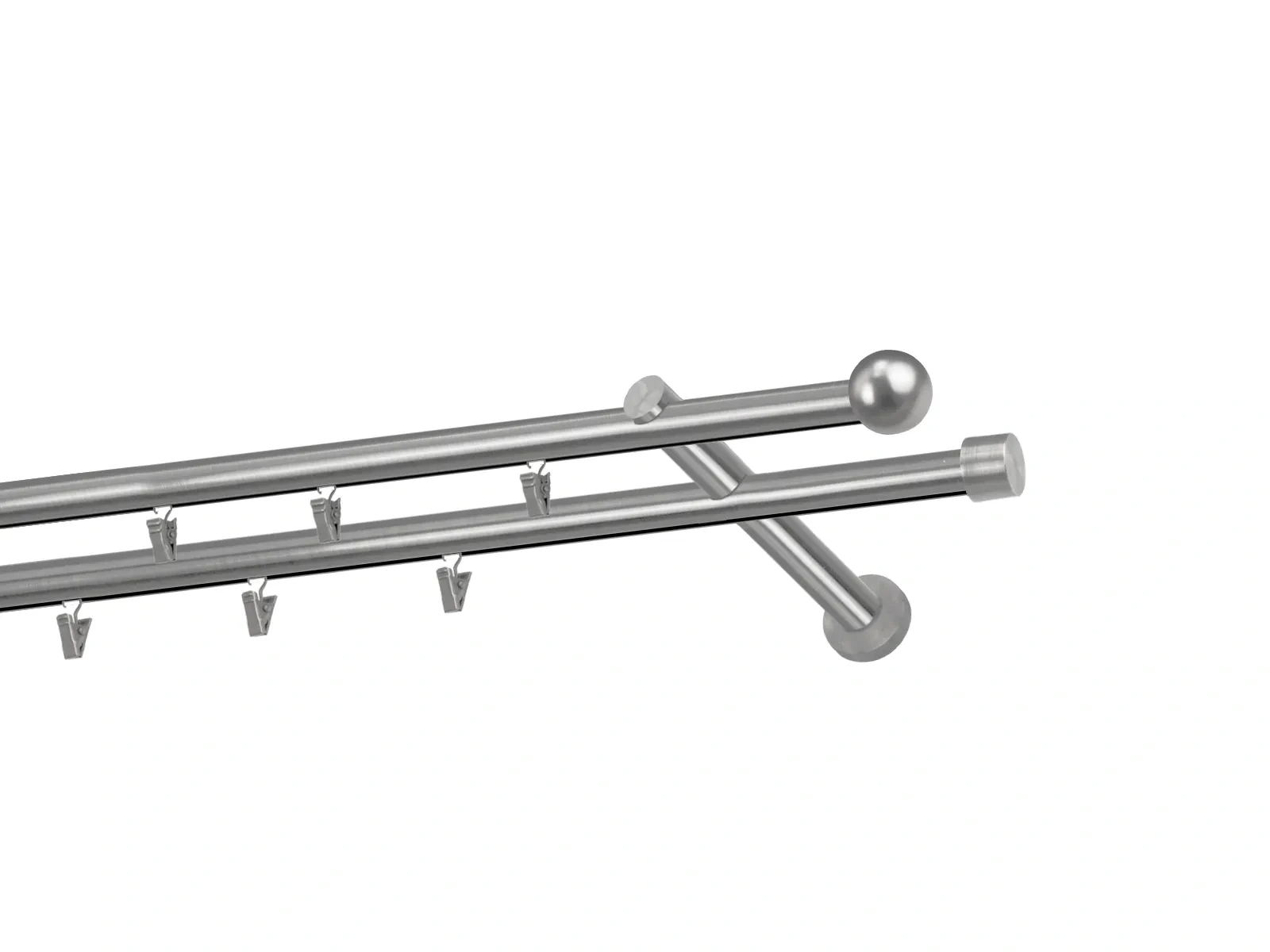 Dvojradová garniža s povrchovou úpravou - odtieň satin-nikel (matné striebro). Celokovové garniže s kvalitnou povrchovou úpravou - galvanické pokovovanie. Galvanické pokovovanie zabezpečuje vyššiu povrchovú tvrdosť, zvýšenú dolnosť voči poškriabaniu, hladký povrch. Dodávané sú v kompletoch.