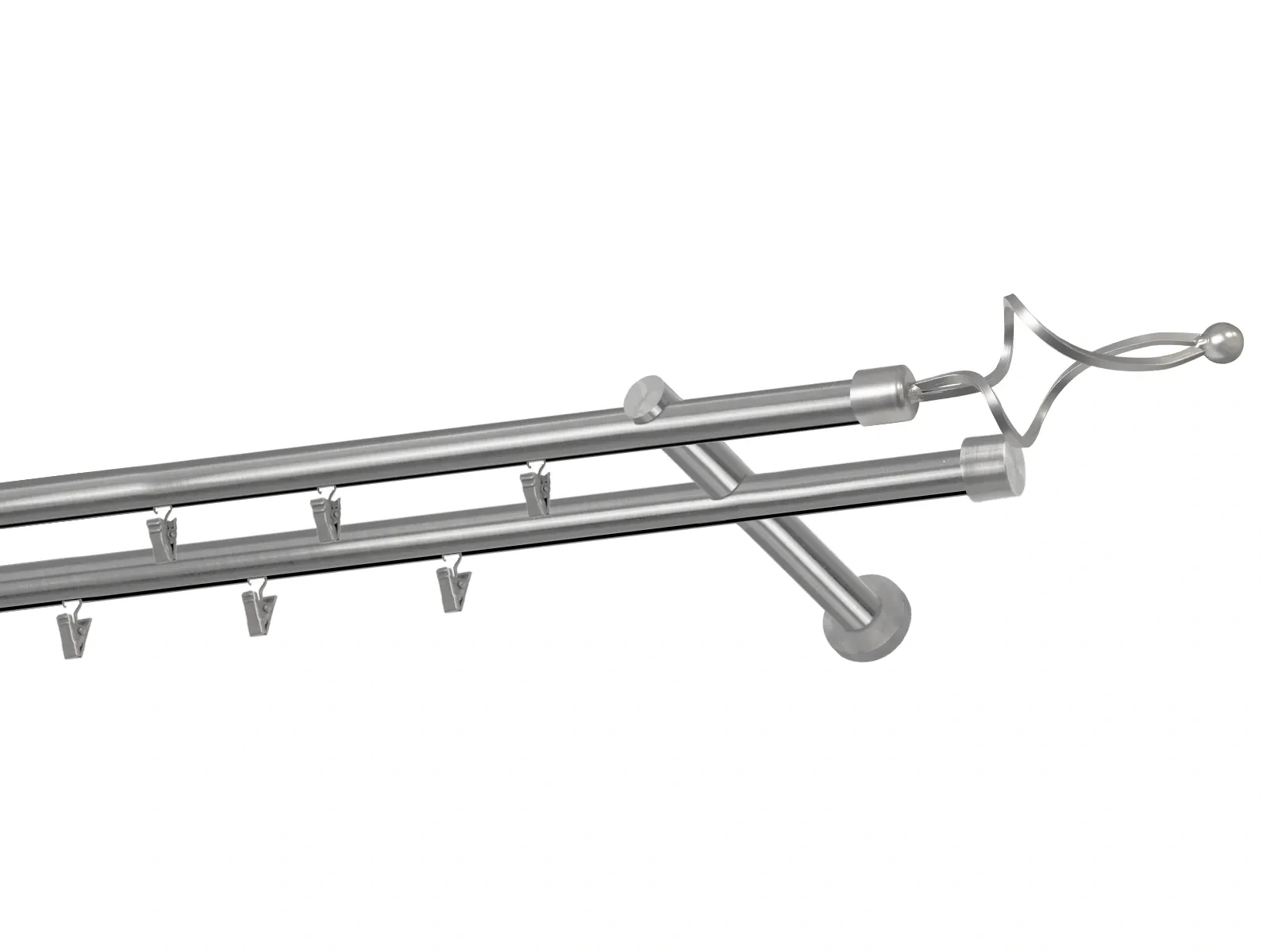 Dvojradová garniža s povrchovou úpravou - odtieň satin-nikel (matné striebro). Celokovové garniže s kvalitnou povrchovou úpravou - galvanické pokovovanie. Galvanické pokovovanie zabezpečuje vyššiu povrchovú tvrdosť, zvýšenú dolnosť voči poškriabaniu, hladký povrch. Dodávané sú v kompletoch.