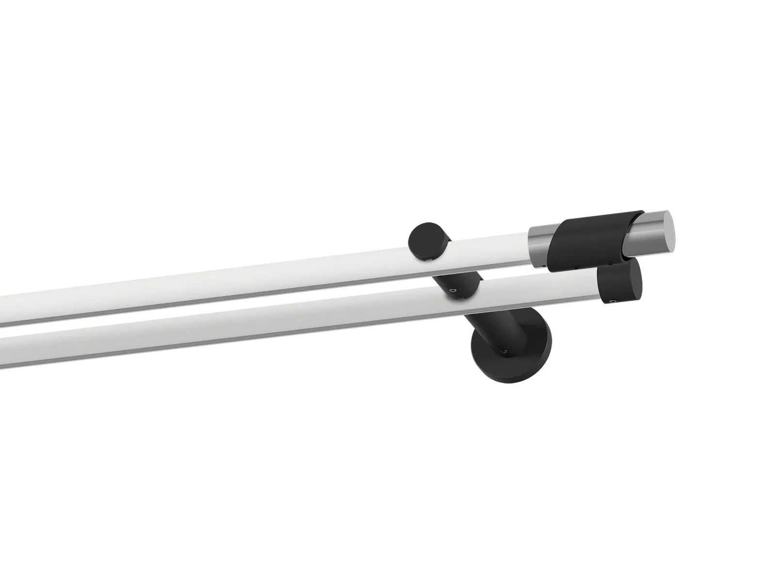 Dvojradová drážková garniža s povrchovou úpravou - bielo čierna lakovaná. Garniže sú dodávané sú v kompletoch. Tvar koncovky a typ držiaka podľa zadaného výberu.