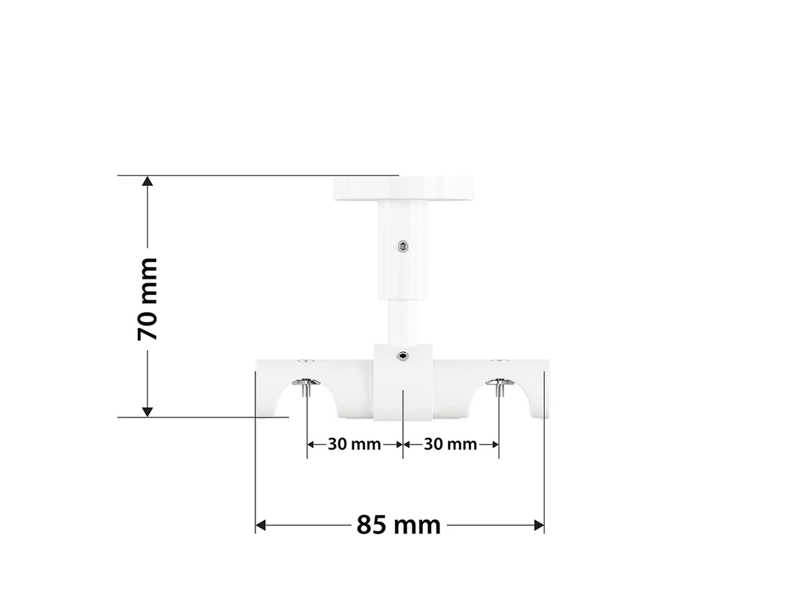 Dvojradová drážková garniža s povrchovou úpravou - biela lakovaná. Garniže sú dodávané sú v kompletoch. Tvar koncovky a typ držiaka podľa zadaného výberu.