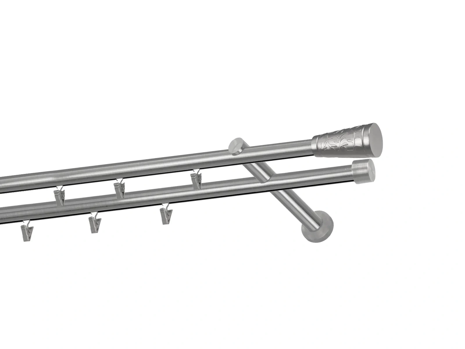 Dvojradová garniža s povrchovou úpravou - odtieň satin-nikel (matné striebro). Celokovové garniže s kvalitnou povrchovou úpravou - galvanické pokovovanie. Galvanické pokovovanie zabezpečuje vyššiu povrchovú tvrdosť, zvýšenú dolnosť voči poškriabaniu, hladký povrch. Dodávané sú v kompletoch.