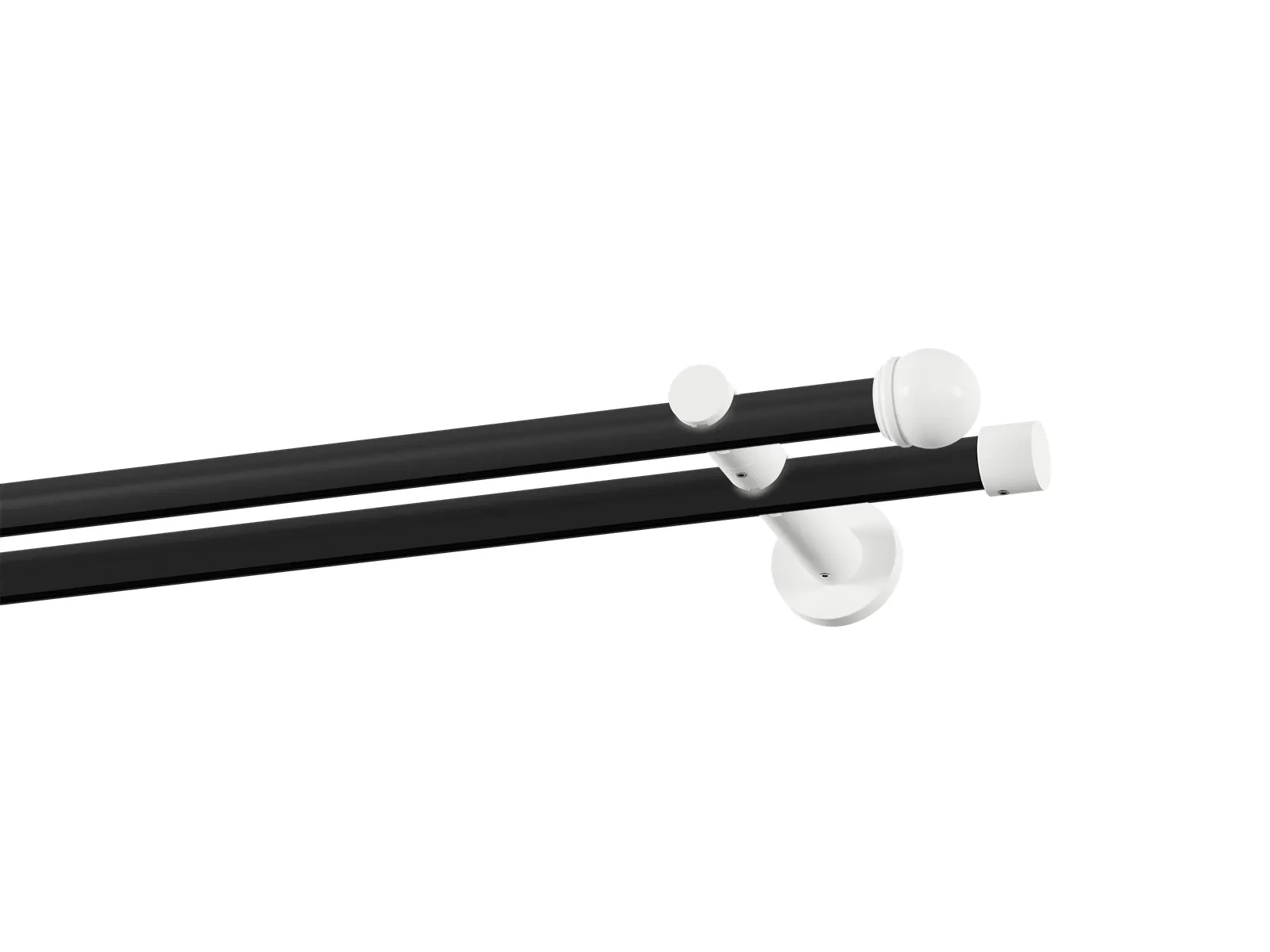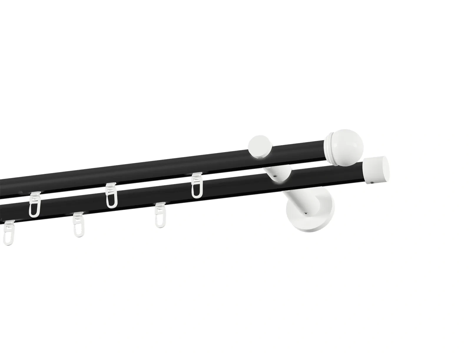 Dvojradová drážková garniža s povrchovou úpravou - čierno biela lakovaná. Garniže sú dodávané sú v kompletoch. Tvar koncovky a typ držiaka podľa zadaného výberu.