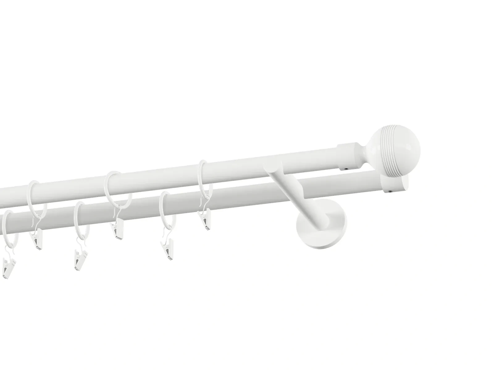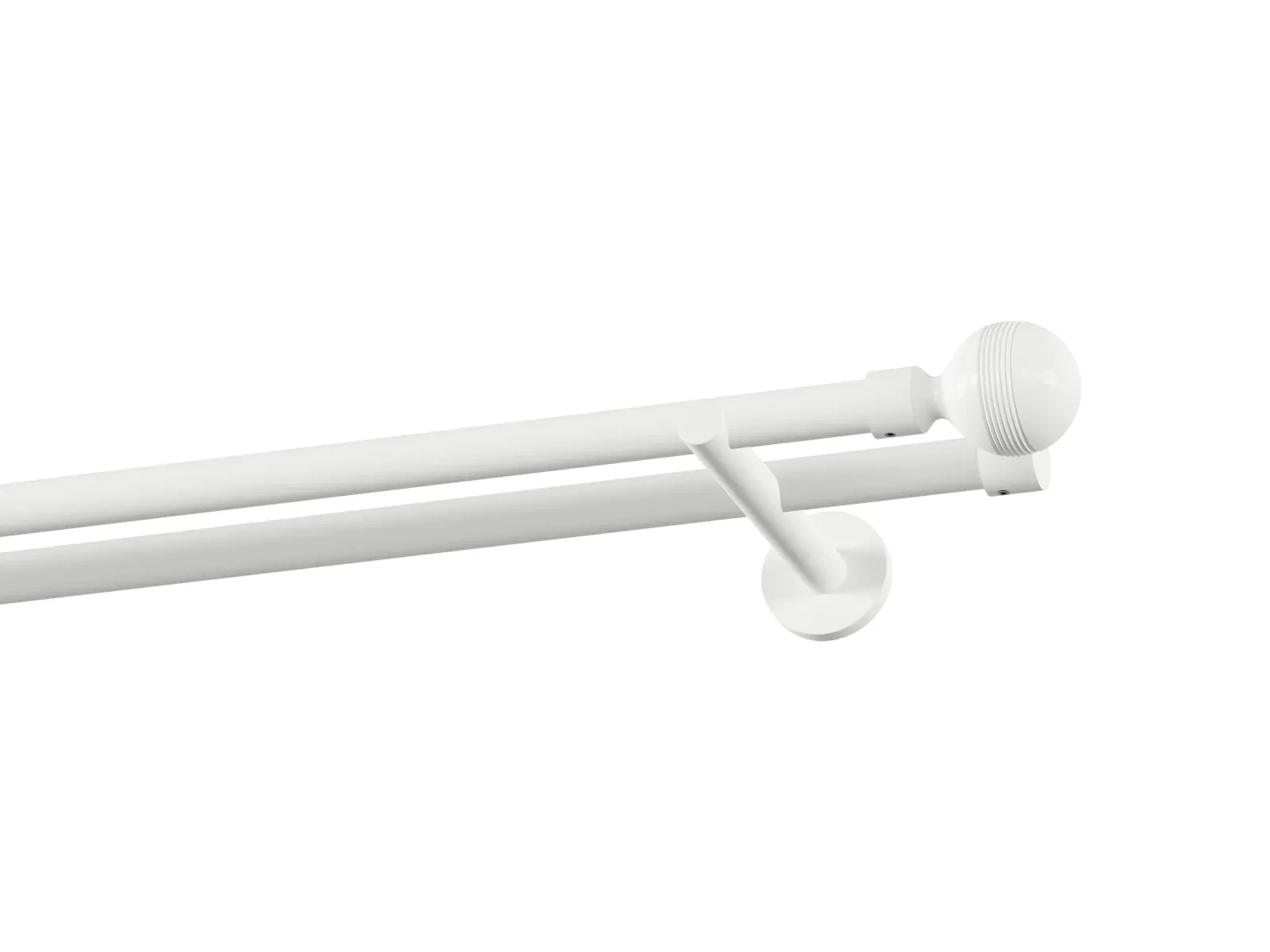 Dvojradová garniža s povrchovou úpravou - biela lakovaná. Garniže sú dodávané sú v kompletoch. Tvar koncovky a typ držiaka podľa zadaného výberu.