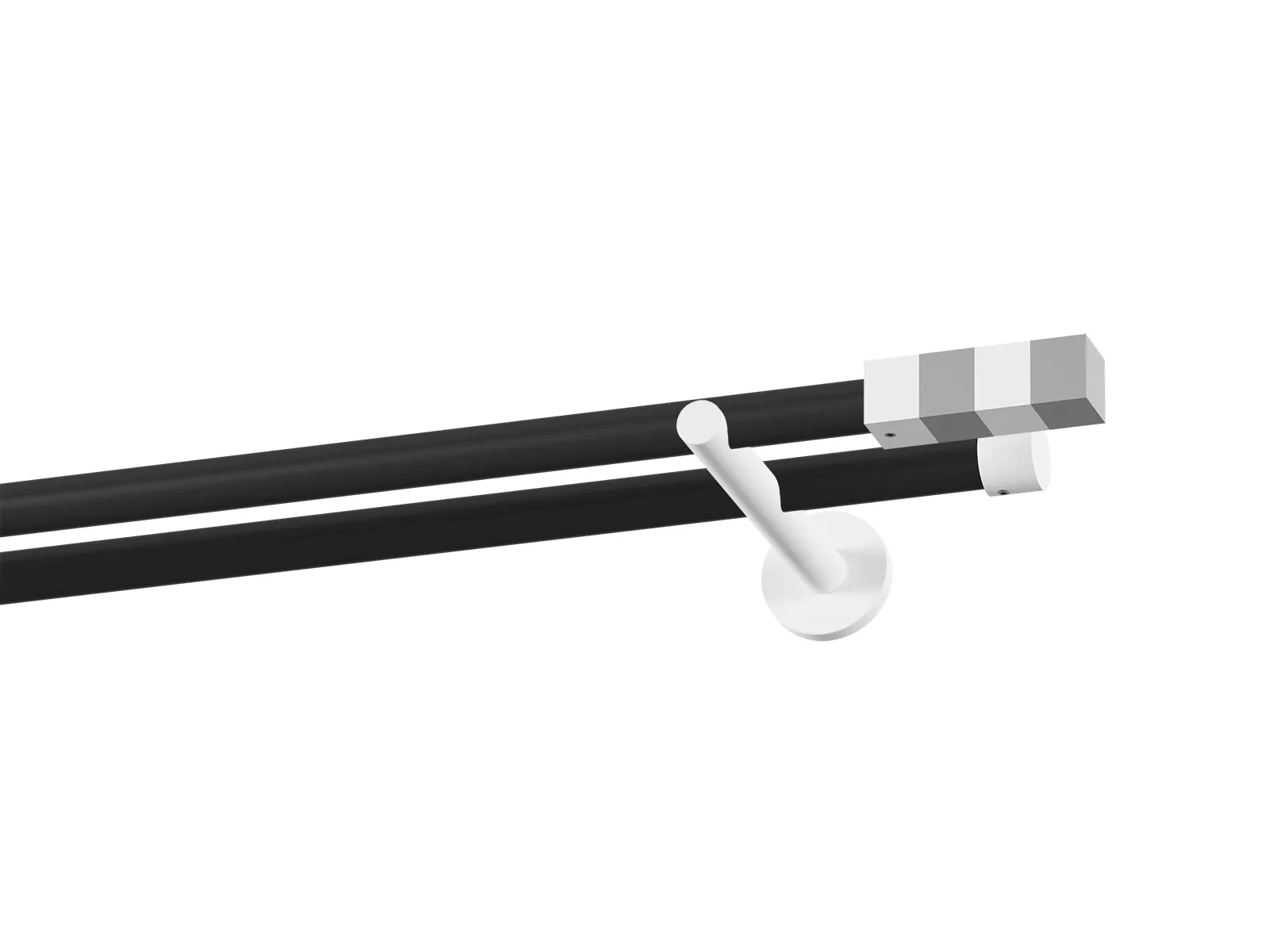Dvojradová garniža s povrchovou úpravou - čierno biela lakovaná. Garniže sú dodávané sú v kompletoch. Tvar koncovky a typ držiaka podľa zadaného výberu.