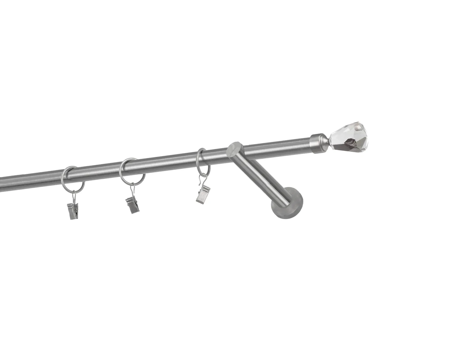 Dĺžka 1600 mm - tyč 16mm - 1600mm - 1ks, držiak - 2ks, koncovka - 2ks, krúžok so štipcom - 15ks (pri výbere parametra príslušenstvo s krúžkami so štipcom), skrutky a hmoždinky na montáž