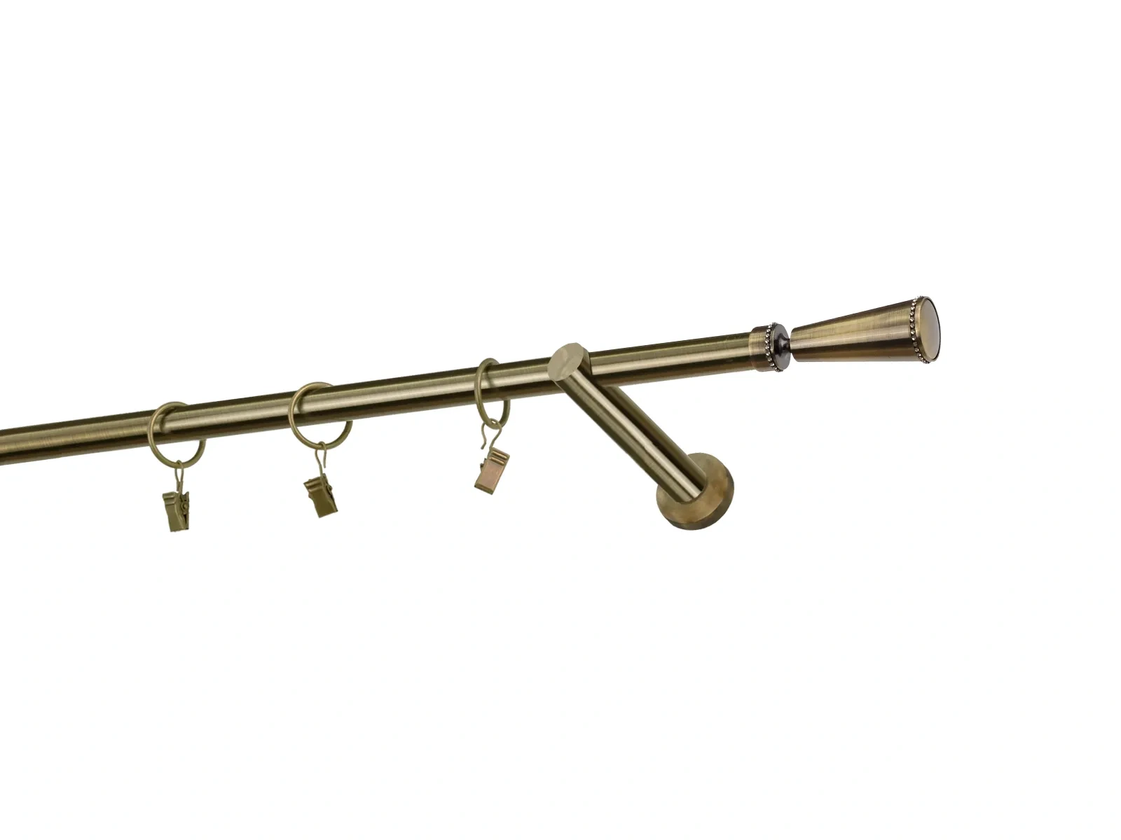Dĺžka 1600 mm - tyč 16mm - 1600mm - 1ks, držiak - 2ks, koncovka - 2ks, krúžok so štipcom - 15ks (pri výbere parametra príslušenstvo s krúžkami so štipcom), skrutky a hmoždinky na montáž