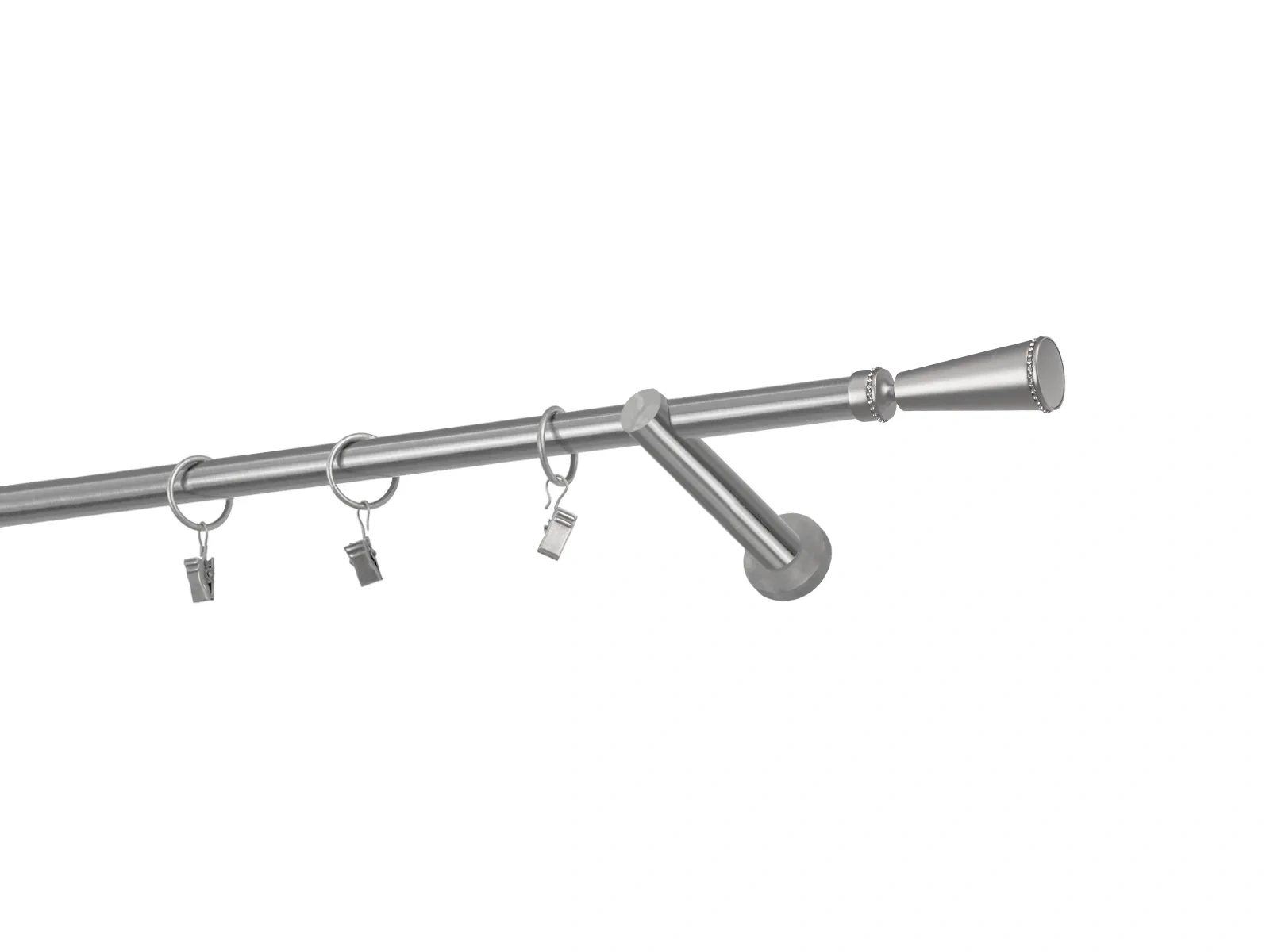 Dĺžka 1600 mm - tyč 16mm - 1600mm - 1ks, držiak - 2ks, koncovka - 2ks, krúžok so štipcom - 15ks (pri výbere parametra príslušenstvo s krúžkami so štipcom), skrutky a hmoždinky na montáž