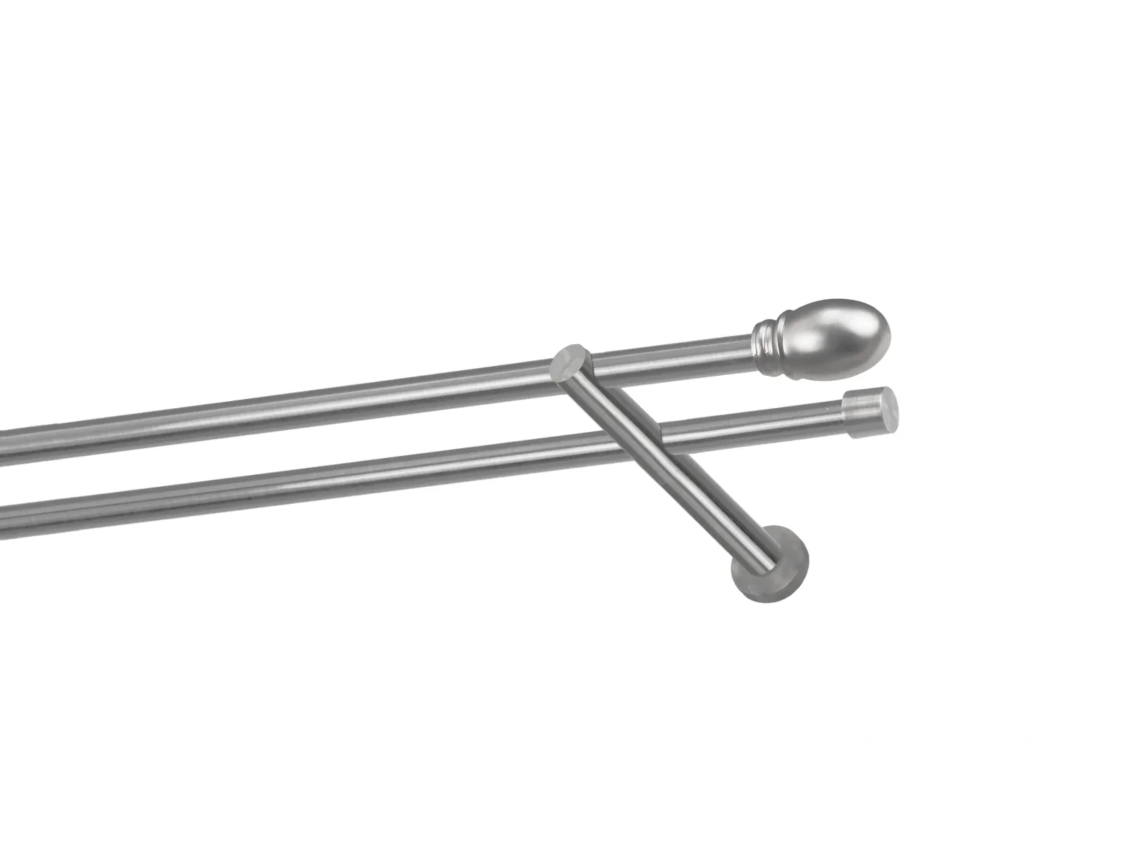 Dvojradová garniža s povrchovou úpravou - odtieň satin-nikel (matné striebro). Celokovové garniže s kvalitnou povrchovou úpravou - galvanické pokovovanie. Galvanické pokovovanie zabezpečuje vyššiu povrchovú tvrdosť, zvýšenú dolnosť voči poškriabaniu, hladký povrch. Dodávané sú v kompletoch.