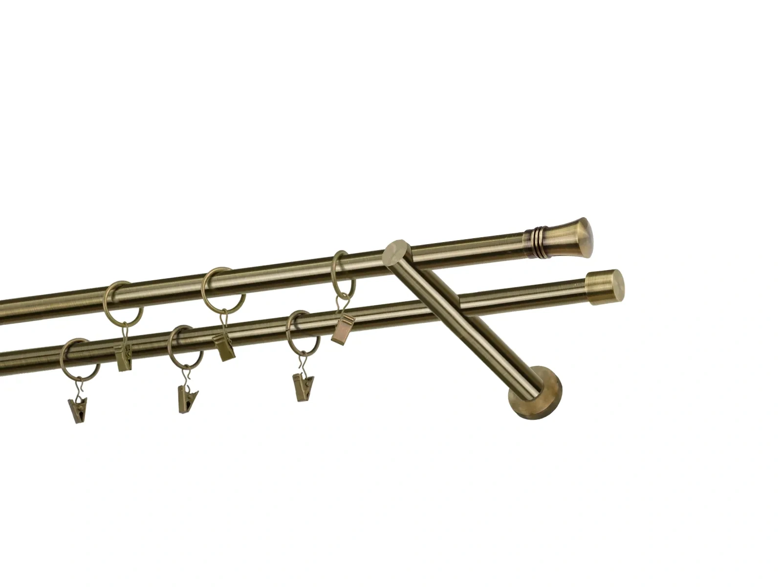 Dvojradová garniža s povrchovou úpravou - odtieň antik (matné zlato). Celokovové garniže s kvalitnou povrchovou úpravou - galvanické pokovovanie. Galvanické pokovovanie zabezpečuje vyššiu povrchovú tvrdosť, zvýšenú dolnosť voči poškriabaniu, hladký povrch. Dodávané sú v kompletoch.