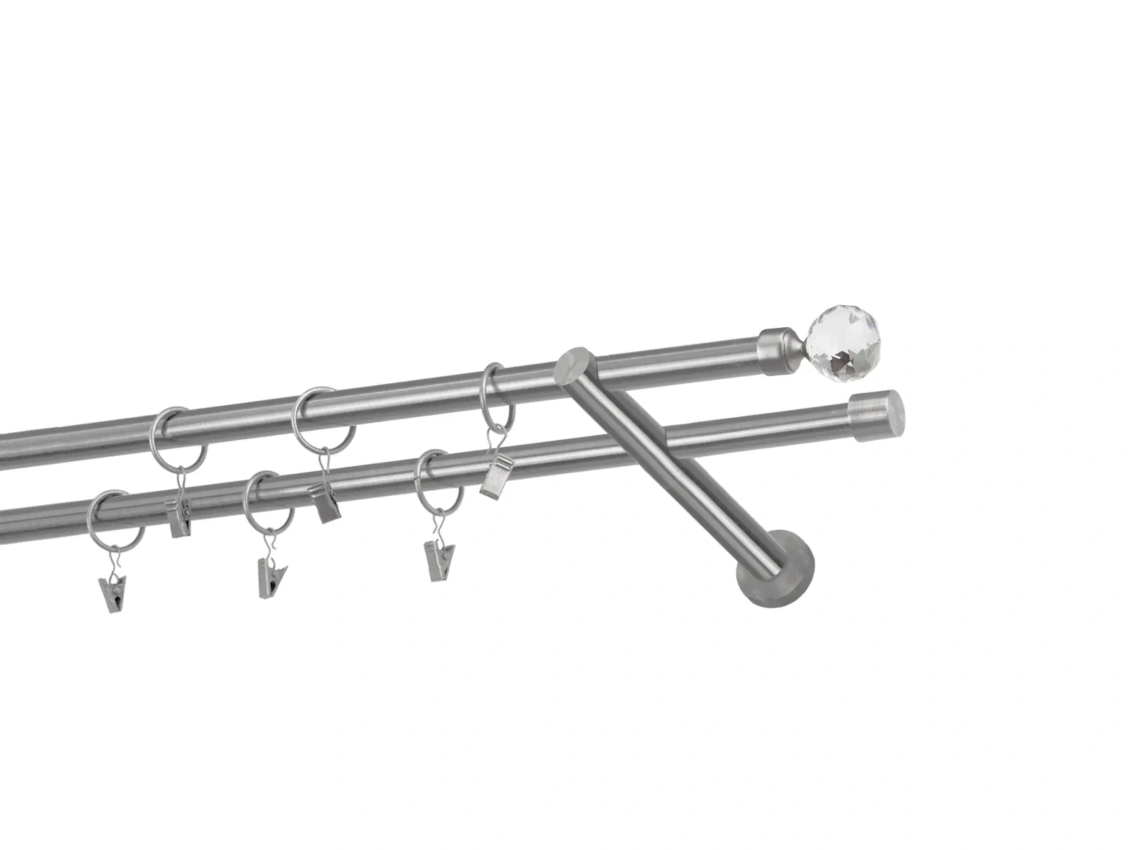 Dvojradová garniža s povrchovou úpravou - odtieň satin-nikel (matné striebro). Celokovové garniže s kvalitnou povrchovou úpravou - galvanické pokovovanie. Galvanické pokovovanie zabezpečuje vyššiu povrchovú tvrdosť, zvýšenú dolnosť voči poškriabaniu, hladký povrch. Dodávané sú v kompletoch.