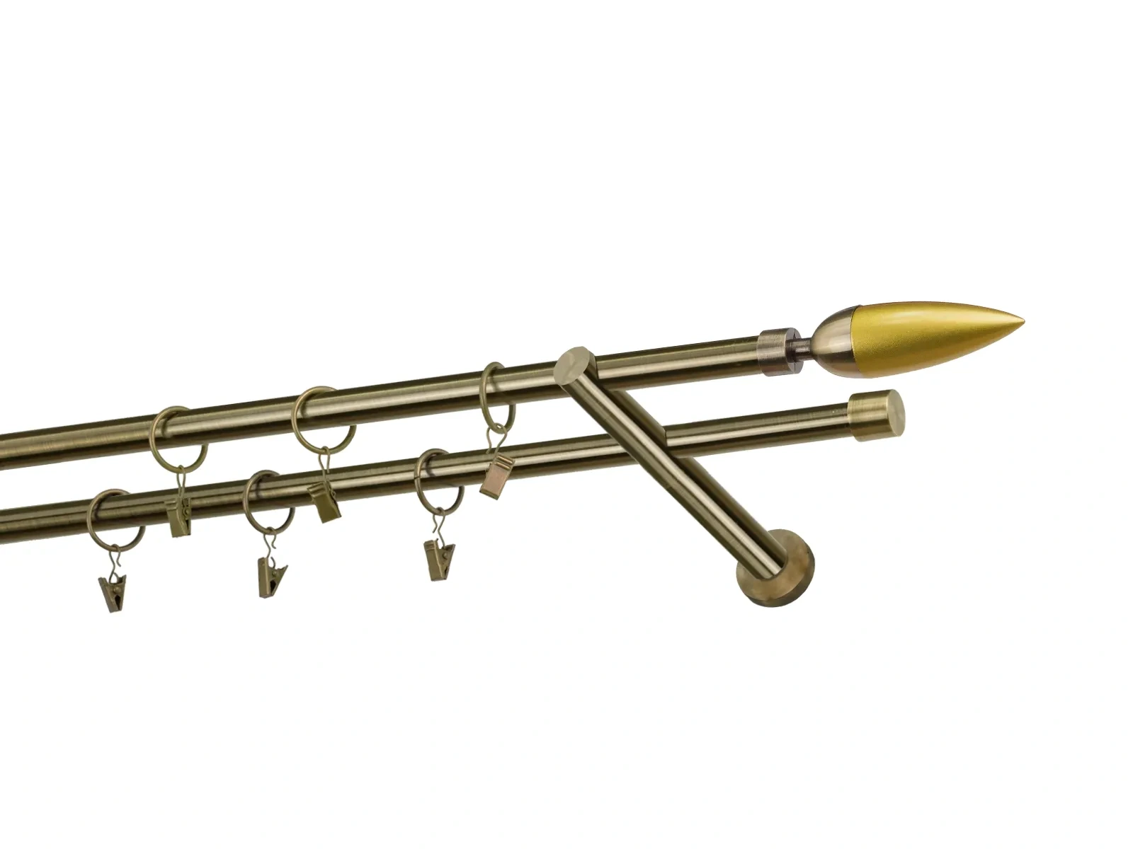 Dvojradová garniža s povrchovou úpravou - odtieň antik (matné zlato). Celokovové garniže s kvalitnou povrchovou úpravou - galvanické pokovovanie. Galvanické pokovovanie zabezpečuje vyššiu povrchovú tvrdosť, zvýšenú dolnosť voči poškriabaniu, hladký povrch. Dodávané sú v kompletoch.