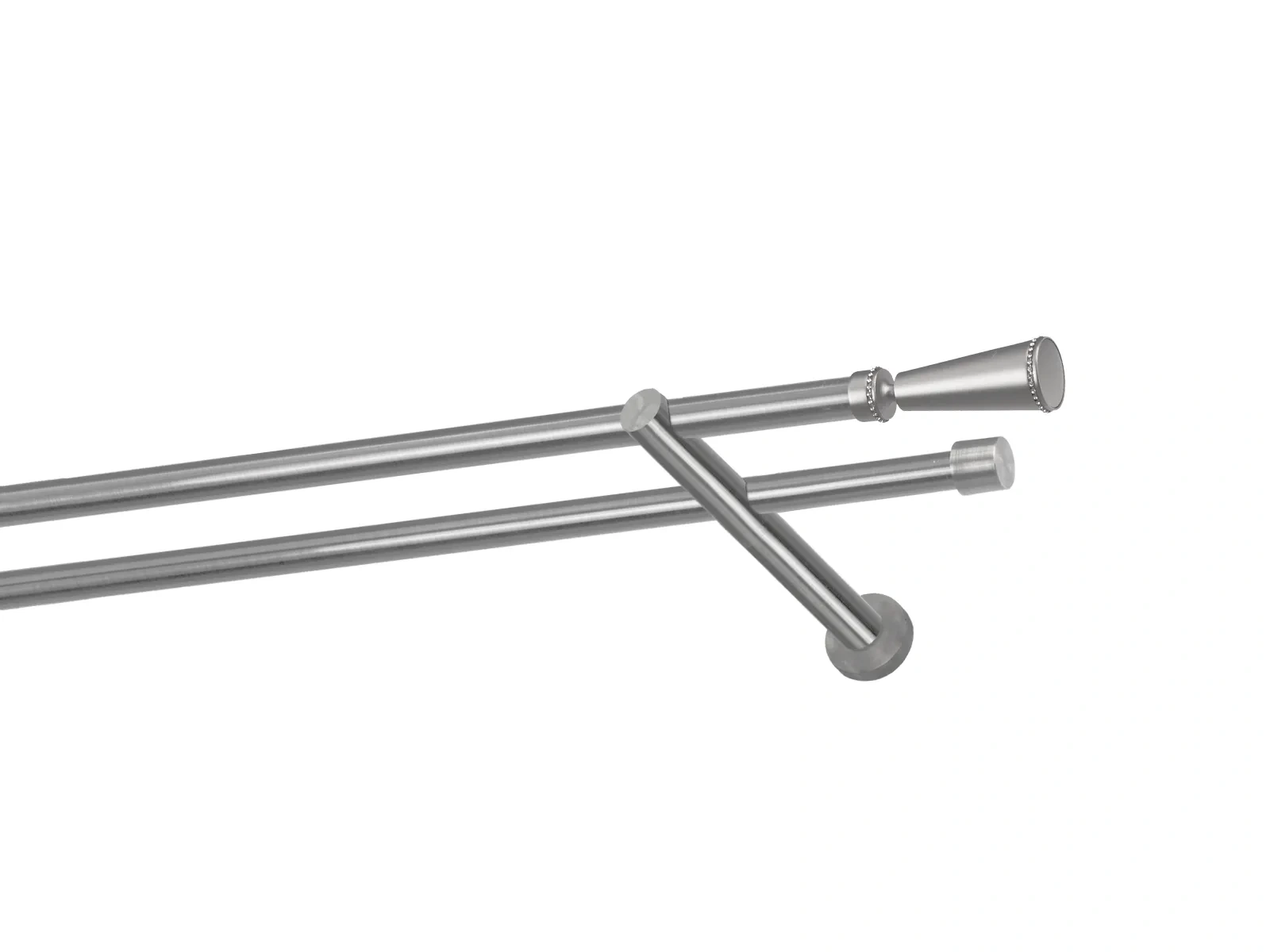 Dvojradová garniža s povrchovou úpravou - odtieň satin-nikel (matné striebro). Celokovové garniže s kvalitnou povrchovou úpravou - galvanické pokovovanie. Galvanické pokovovanie zabezpečuje vyššiu povrchovú tvrdosť, zvýšenú dolnosť voči poškriabaniu, hladký povrch. Dodávané sú v kompletoch.