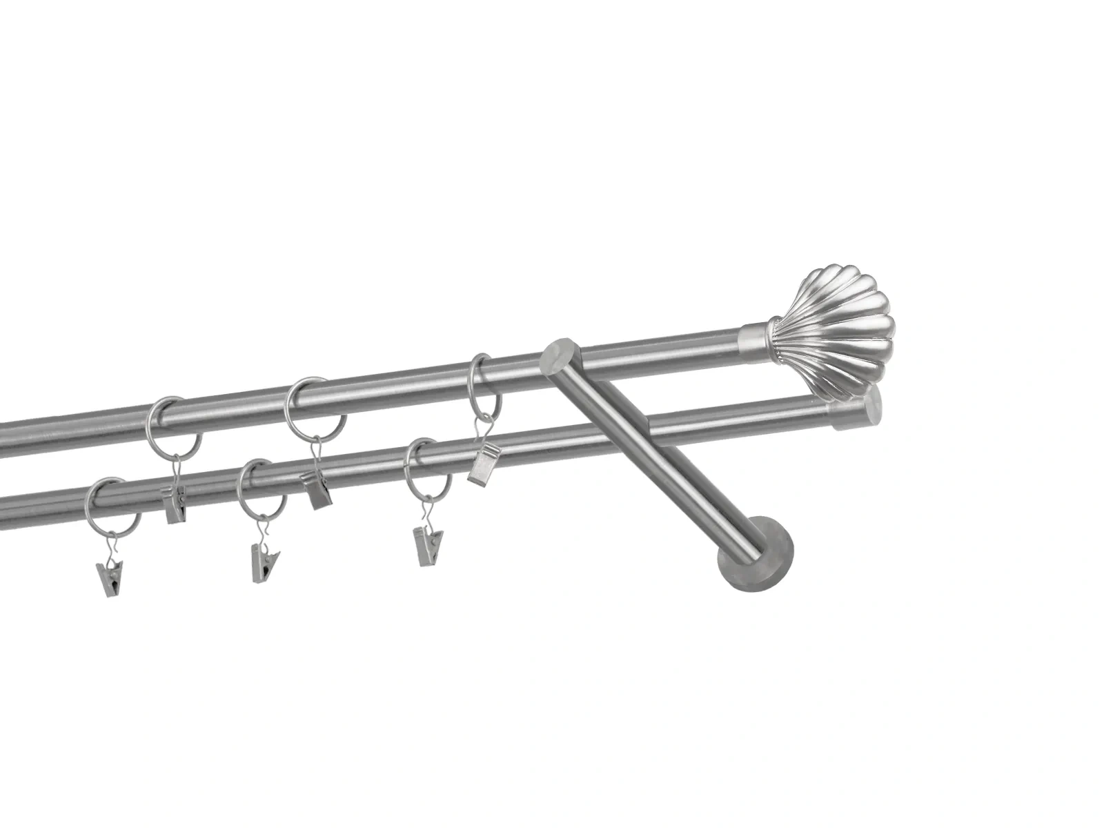 Dĺžka 3200 mm - tyč 16mm - 1600mm - 4ks, spojka tyče – 2 ks, držiak dvojitý - 3ks, koncovka - 2ks, koncovka zadná(PULLO) - 2ks, krúžok so štipcom - 60ks (pri výbere parametra príslušenstvo s krúžkami so štipcom), skrutky a hmoždinky na montáž