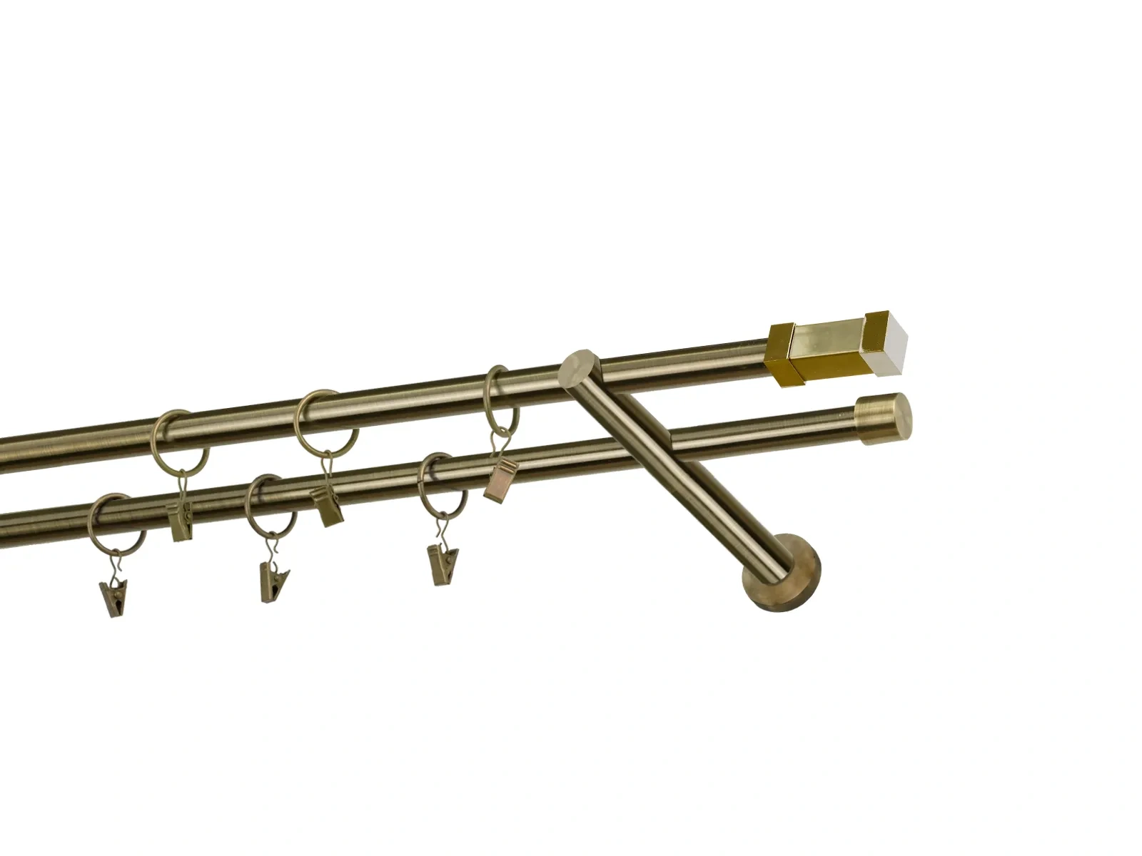 Dvojradová garniža s povrchovou úpravou - odtieň antik (matné zlato). Celokovové garniže s kvalitnou povrchovou úpravou - galvanické pokovovanie. Galvanické pokovovanie zabezpečuje vyššiu povrchovú tvrdosť, zvýšenú dolnosť voči poškriabaniu, hladký povrch. Dodávané sú v kompletoch.