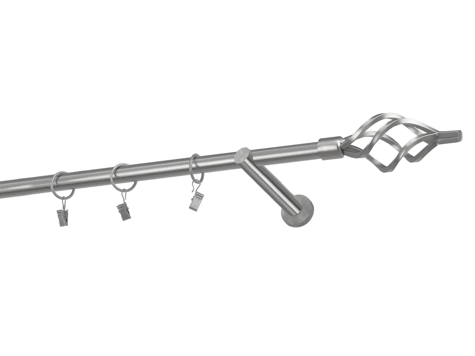 Dĺžka 1400 mm - tyč 19mm - 1400mm - 1ks, držiak - 2ks, koncovka - 2ks, krúžok so štipcom - 13ks (pri výbere parametra príslušenstvo s krúžkami so štipcom), skrutky a hmoždinky na montáž