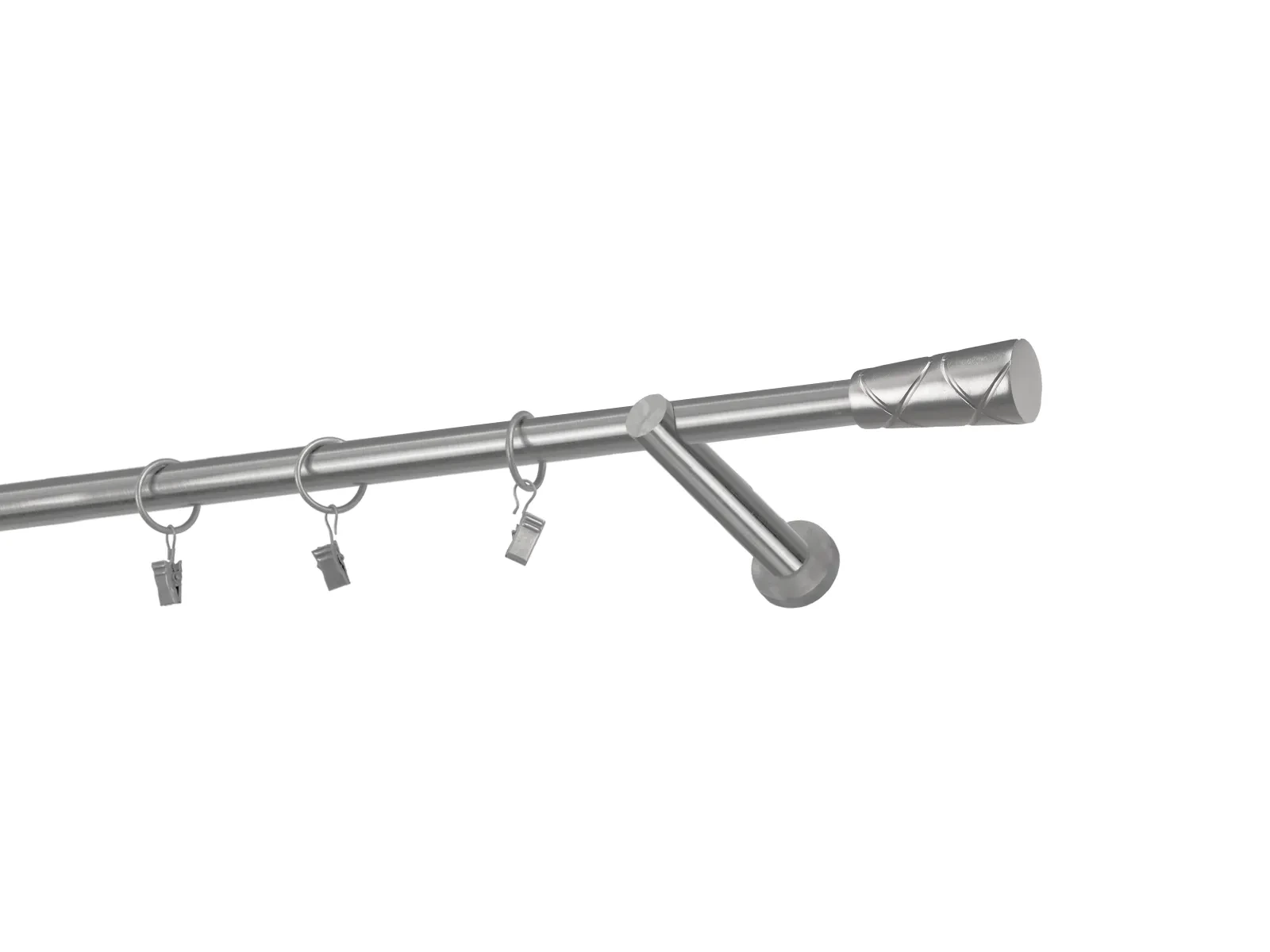 Dĺžka 1200 mm - tyč 19mm - 1200mm - 1ks, držiak - 2ks, koncovka - 2ks, krúžok so štipcom - 11ks (pri výbere parametra príslušenstvo s krúžkami so štipcom), skrutky a hmoždinky na montáž