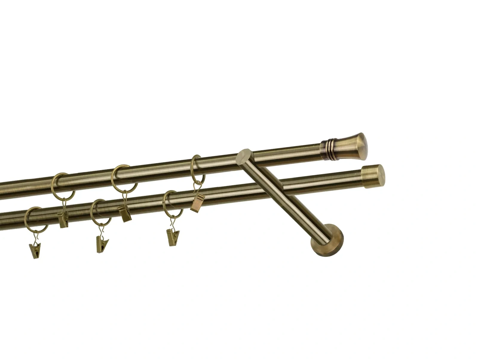 Dvojradová garniža s povrchovou úpravou - odtieň antik (matné zlato). Celokovové garniže s kvalitnou povrchovou úpravou - galvanické pokovovanie. Galvanické pokovovanie zabezpečuje vyššiu povrchovú tvrdosť, zvýšenú dolnosť voči poškriabaniu, hladký povrch. Dodávané sú v kompletoch.