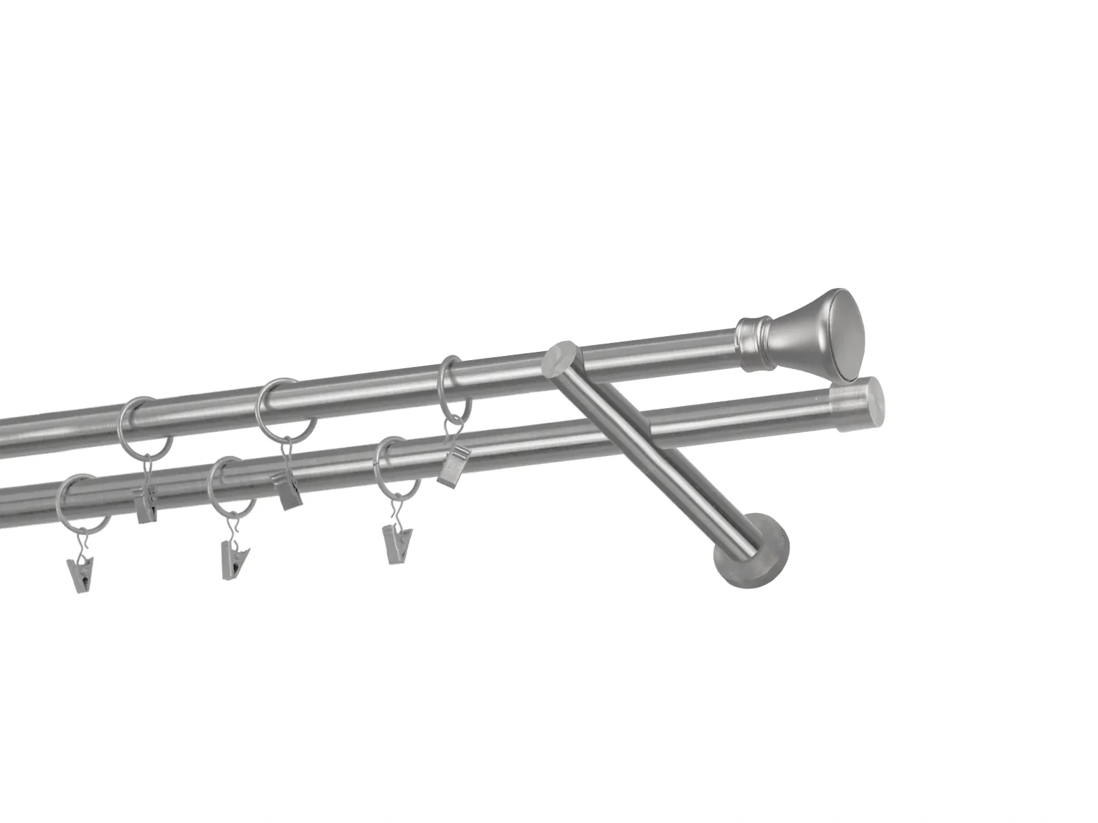 Dvojradová garniža s povrchovou úpravou - odtieň satin-nikel (matné striebro). Celokovové garniže s kvalitnou povrchovou úpravou - galvanické pokovovanie. Galvanické pokovovanie zabezpečuje vyššiu povrchovú tvrdosť, zvýšenú dolnosť voči poškriabaniu, hladký povrch. Dodávané sú v kompletoch.