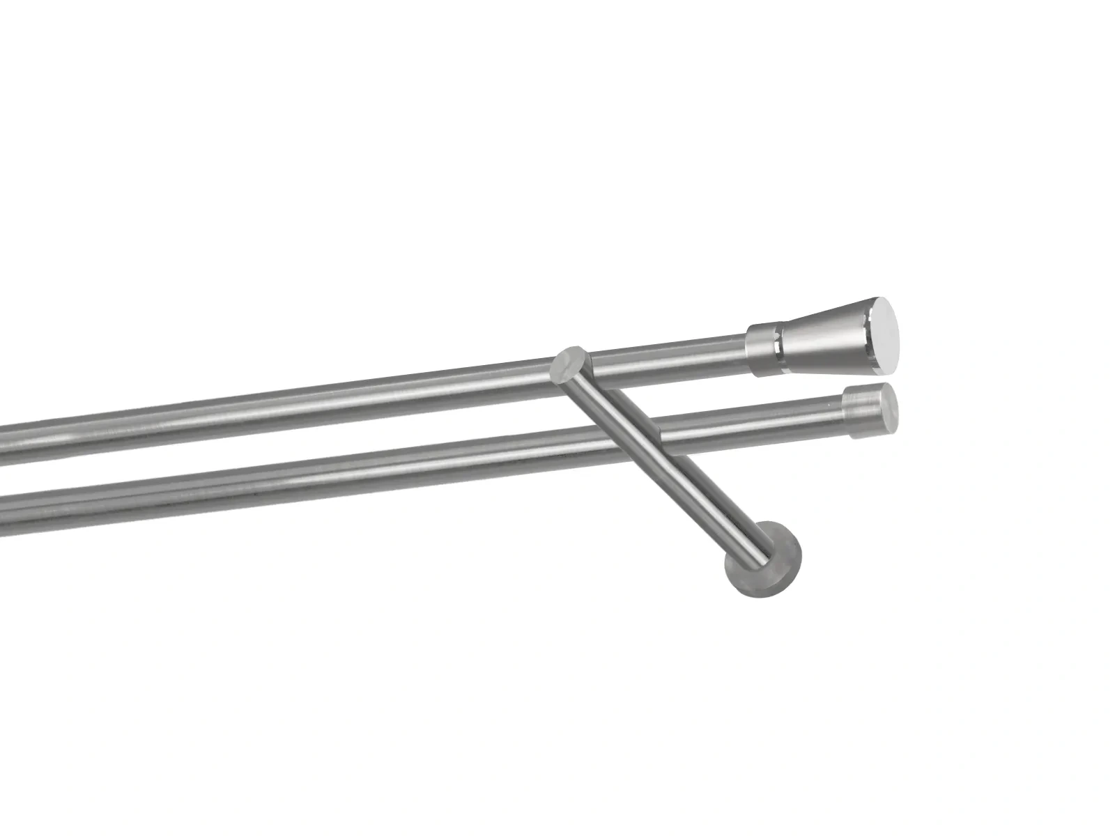Dĺžka 1600 mm - tyč 19mm - 1600mm - 2ks, držiak dvojitý - 2ks, koncovka - 2ks, koncovka zadná(PULLO) - 2ks, krúžok so štipcom - 30ks (pri výbere parametra príslušenstvo s krúžkami so štipcom), skrutky a hmoždinky na montáž