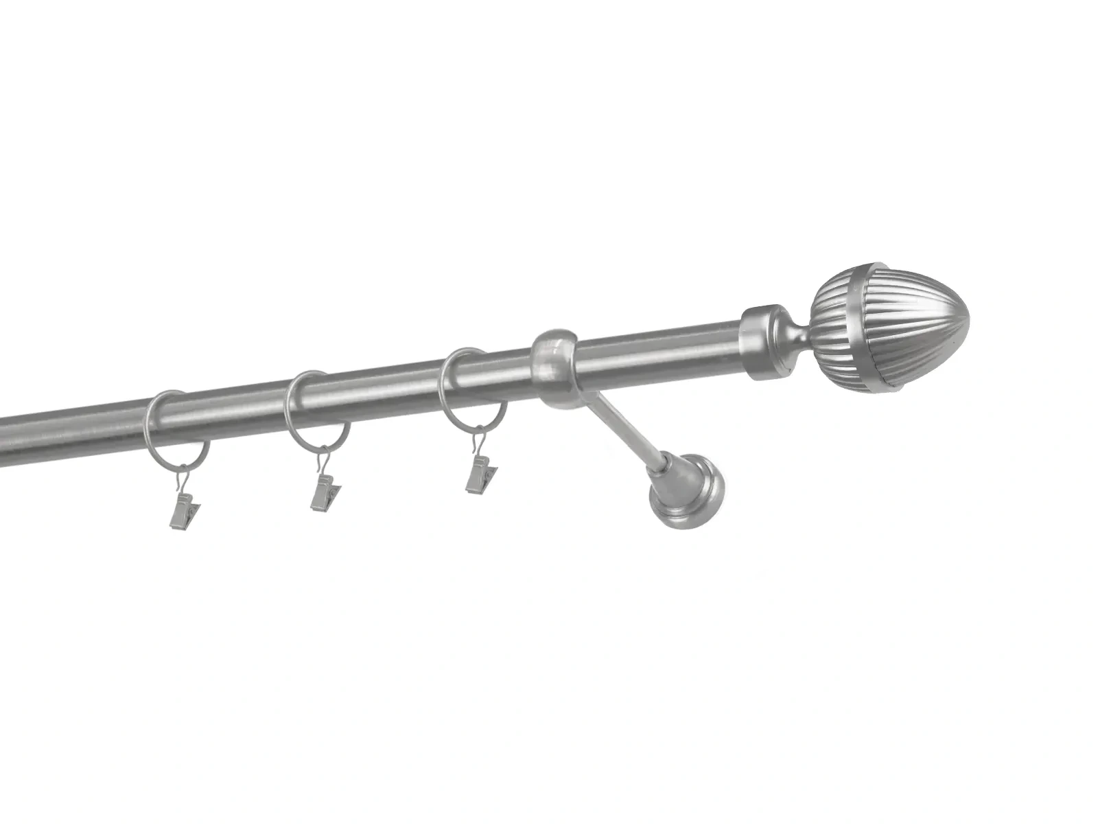 Dĺžka 1200 mm - tyč 25mm - 1200mm - 1ks, držiak - 2ks, koncovka - 2ks, krúžok so štipcom - 11ks (pri výbere parametra príslušenstvo s krúžkami so štipcom), skrutky a hmoždinky na montáž
