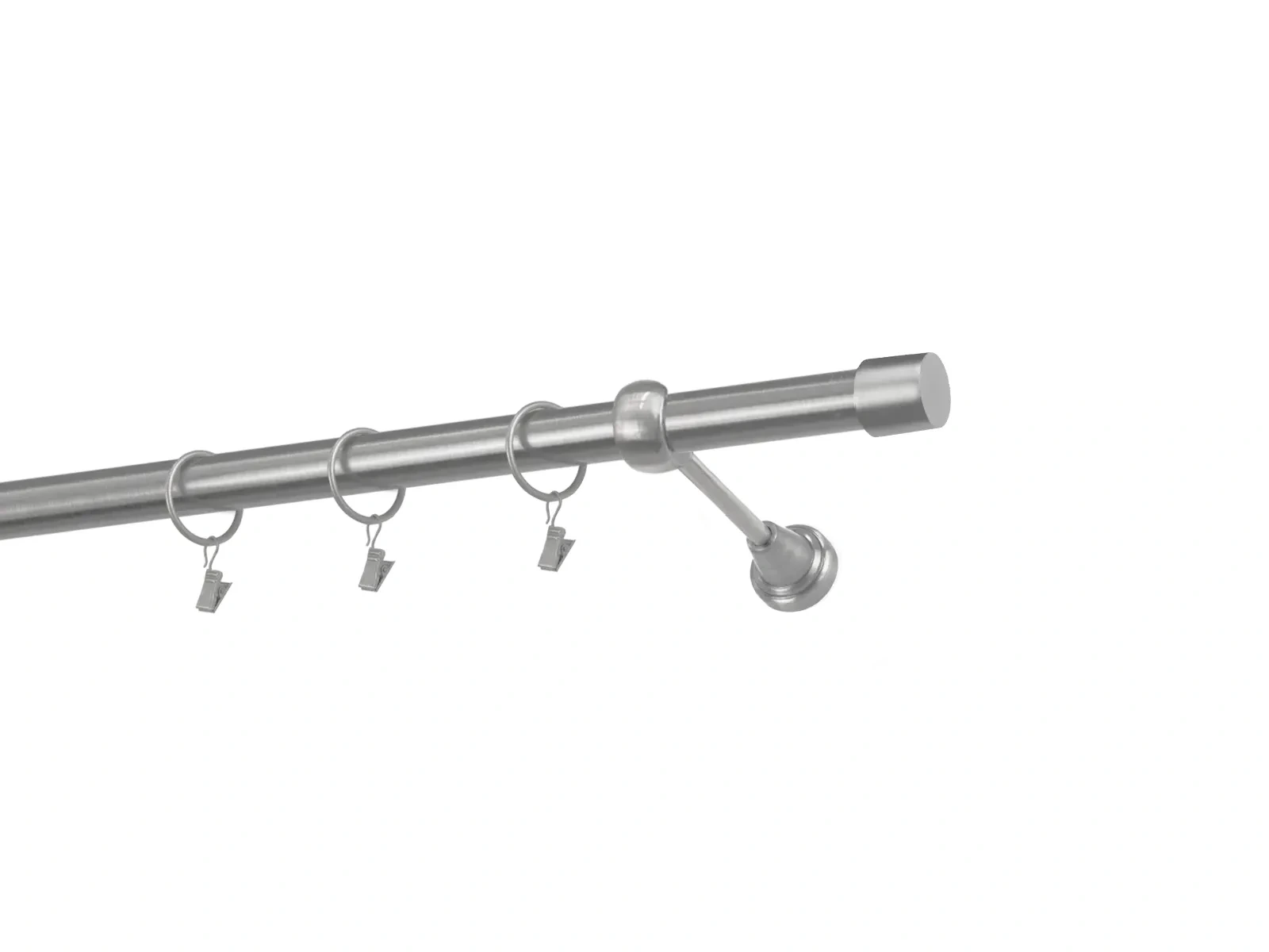 Dĺžka 1800 mm - tyč 25mm - 1800mm - 1ks, držiak - 2ks, koncovka - 2ks, krúžok so štipcom - 17ks (pri výbere parametra príslušenstvo s krúžkami so štipcom), skrutky a hmoždinky na montáž