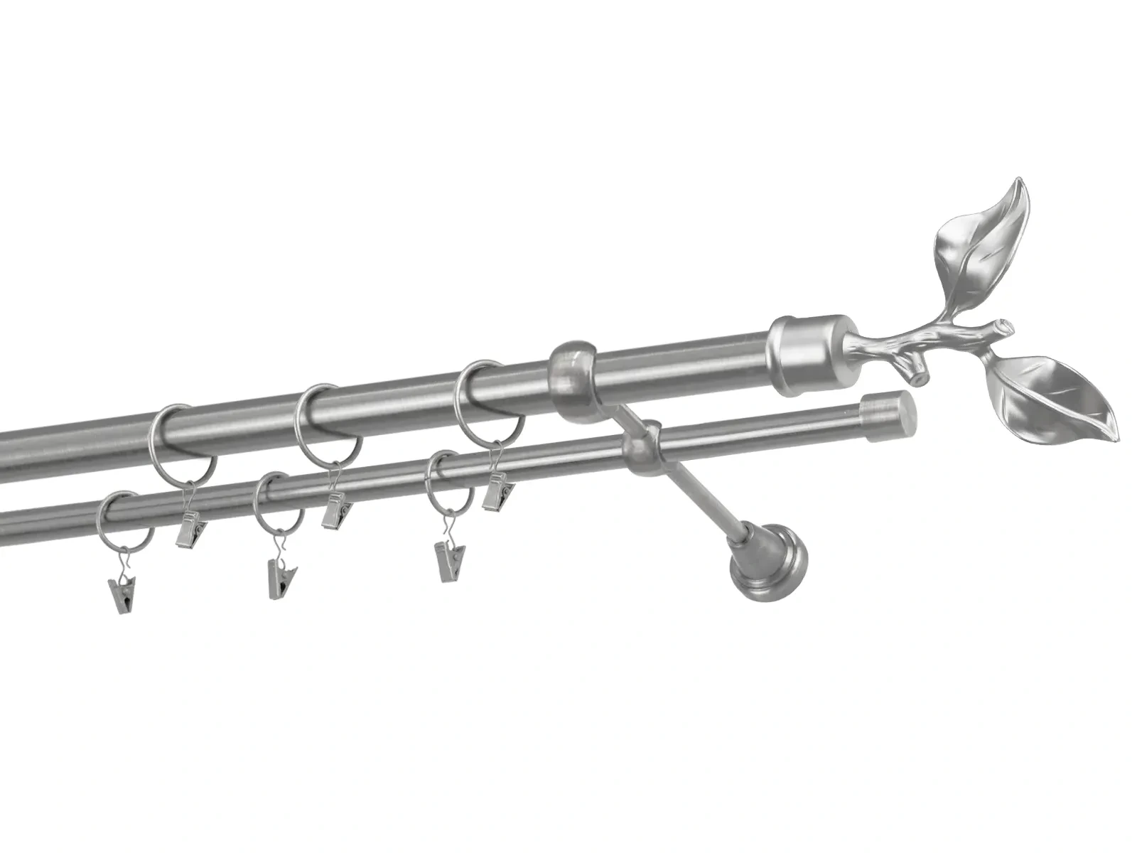Dvojradová garniža s povrchovou úpravou - odtieň satin-nikel (matné striebro). Celokovové garniže s kvalitnou povrchovou úpravou - galvanické pokovovanie. Galvanické pokovovanie zabezpečuje vyššiu povrchovú tvrdosť, zvýšenú dolnosť voči poškriabaniu, hladký povrch. Dodávané sú v kompletoch.