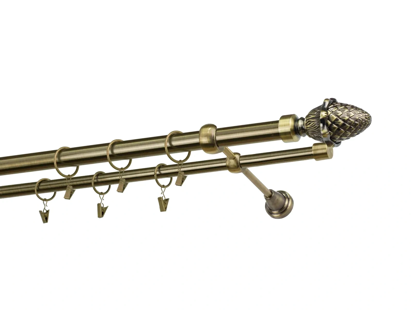 Dvojradová garniža s povrchovou úpravou - odtieň antik (matné zlato). Celokovové garniže s kvalitnou povrchovou úpravou - galvanické pokovovanie. Galvanické pokovovanie zabezpečuje vyššiu povrchovú tvrdosť, zvýšenú dolnosť voči poškriabaniu, hladký povrch. Dodávané sú v kompletoch.