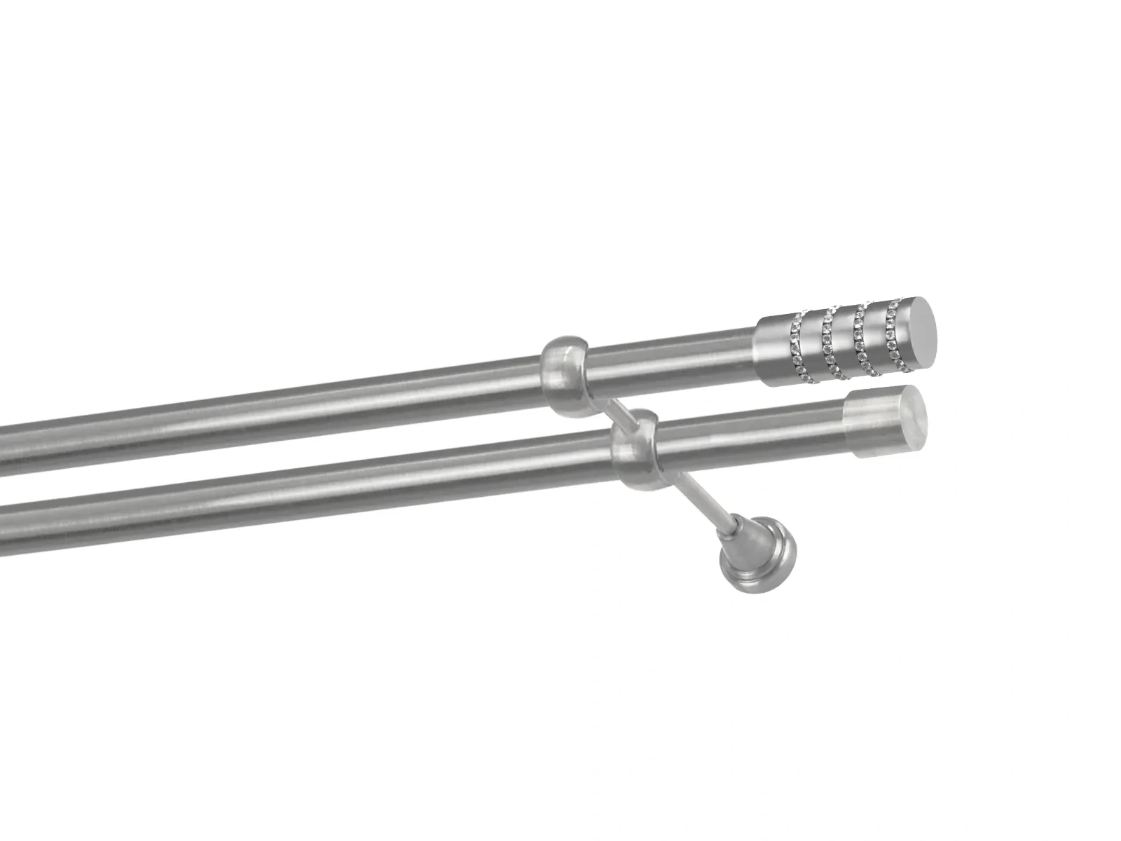 Dvojradová garniža s povrchovou úpravou - odtieň satin-nikel (matné striebro). Celokovové garniže s kvalitnou povrchovou úpravou - galvanické pokovovanie. Galvanické pokovovanie zabezpečuje vyššiu povrchovú tvrdosť, zvýšenú dolnosť voči poškriabaniu, hladký povrch. Dodávané sú v kompletoch.