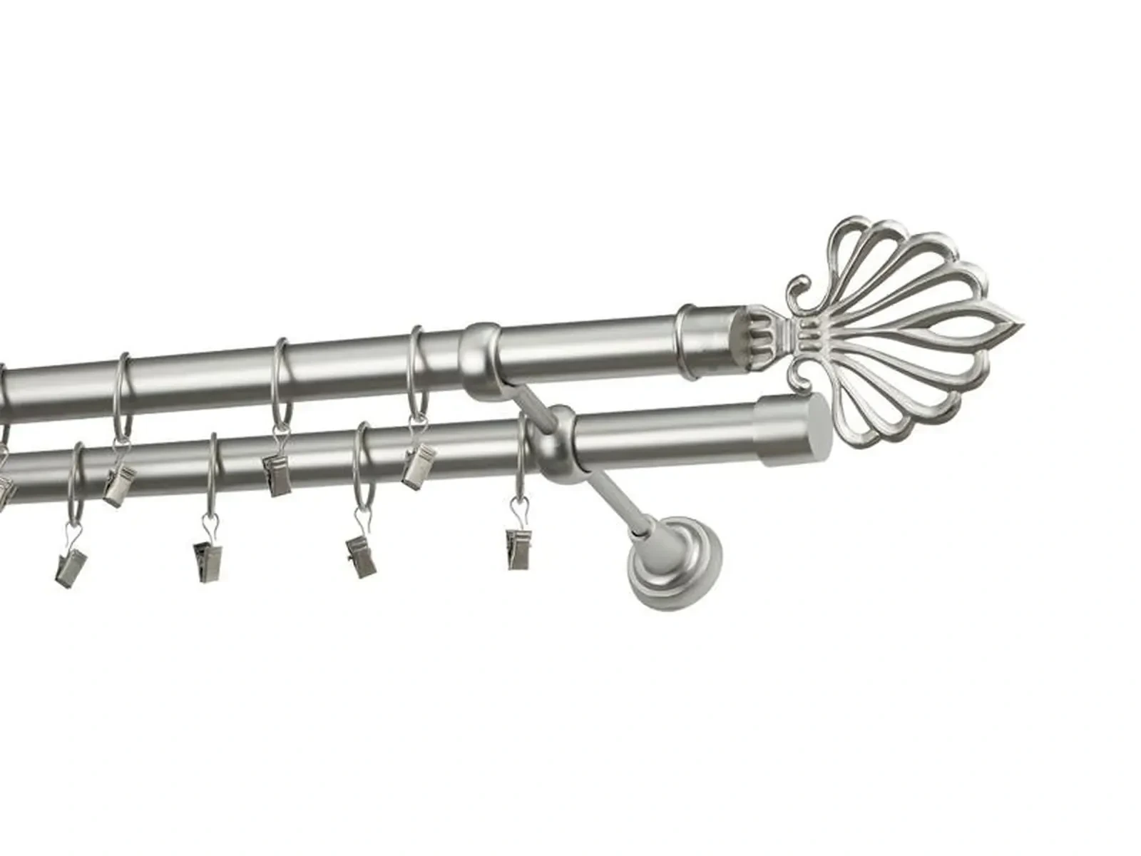 Dvojradová garniža s povrchovou úpravou - odtieň satin-nikel (matné striebro). Celokovové garniže s kvalitnou povrchovou úpravou - galvanické pokovovanie. Galvanické pokovovanie zabezpečuje vyššiu povrchovú tvrdosť, zvýšenú dolnosť voči poškriabaniu, hladký povrch. Dodávané sú v kompletoch.