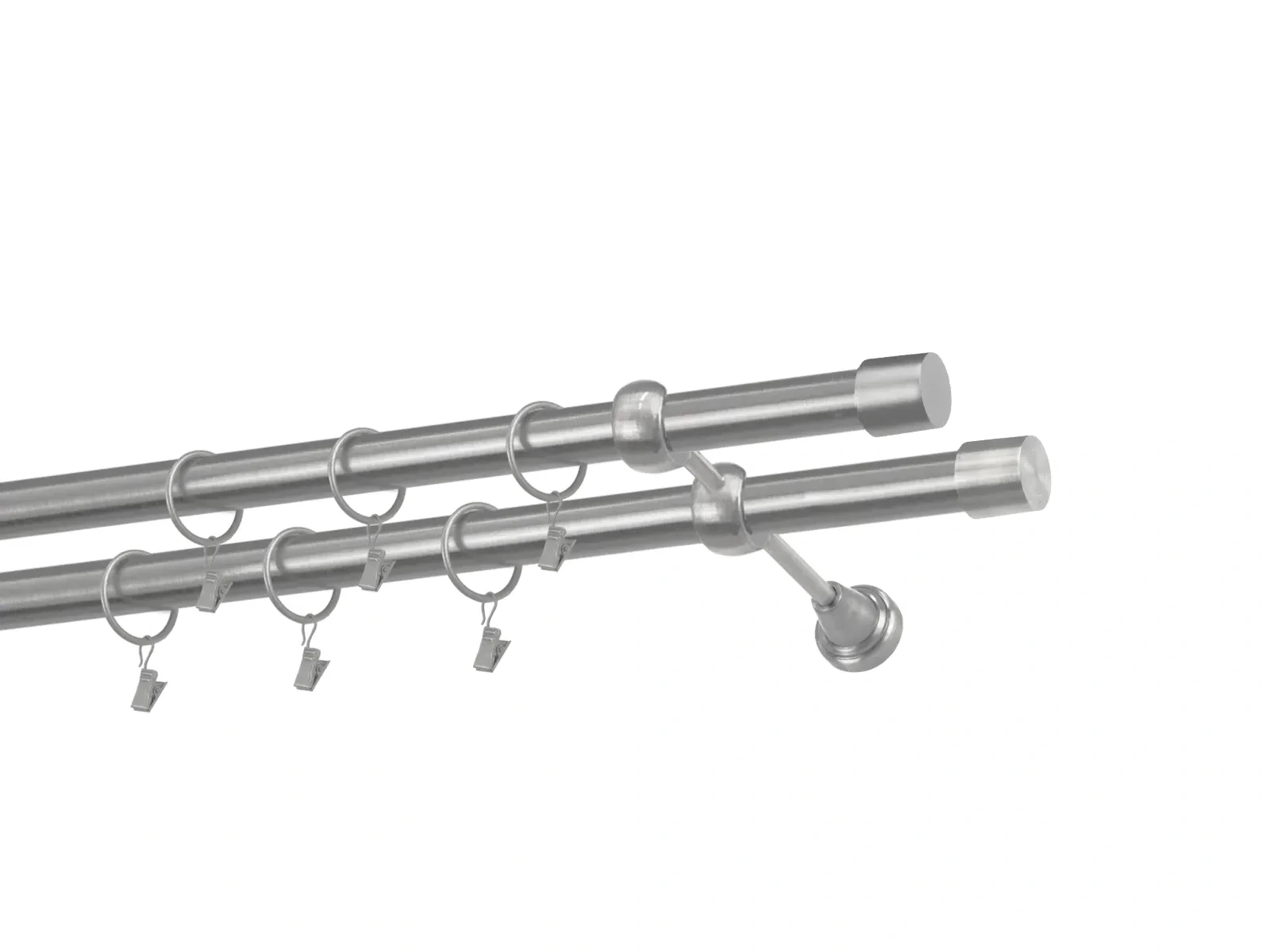 Dvojradová garniža s povrchovou úpravou - odtieň satin-nikel (matné striebro). Celokovové garniže s kvalitnou povrchovou úpravou - galvanické pokovovanie. Galvanické pokovovanie zabezpečuje vyššiu povrchovú tvrdosť, zvýšenú dolnosť voči poškriabaniu, hladký povrch. Dodávané sú v kompletoch.