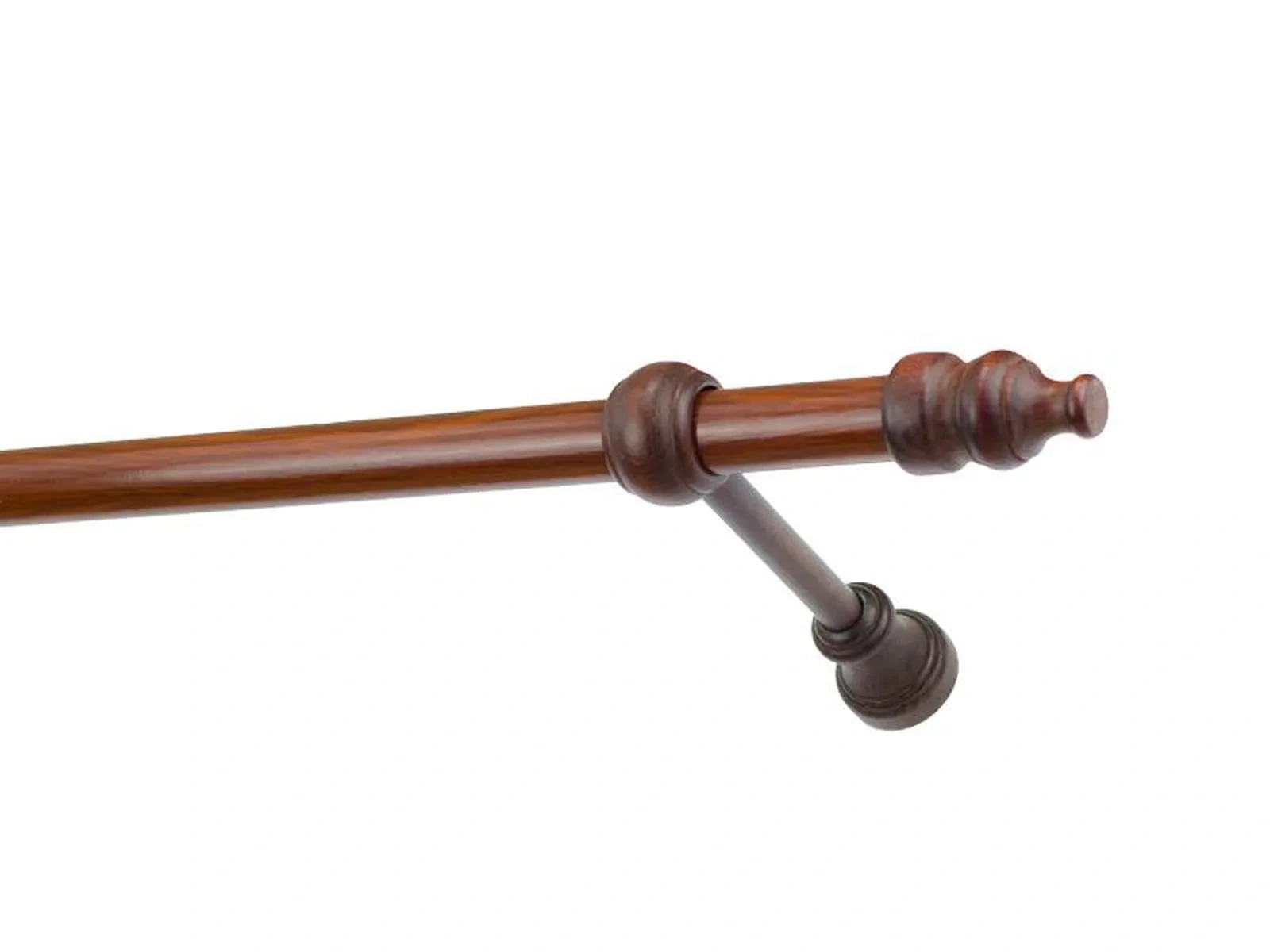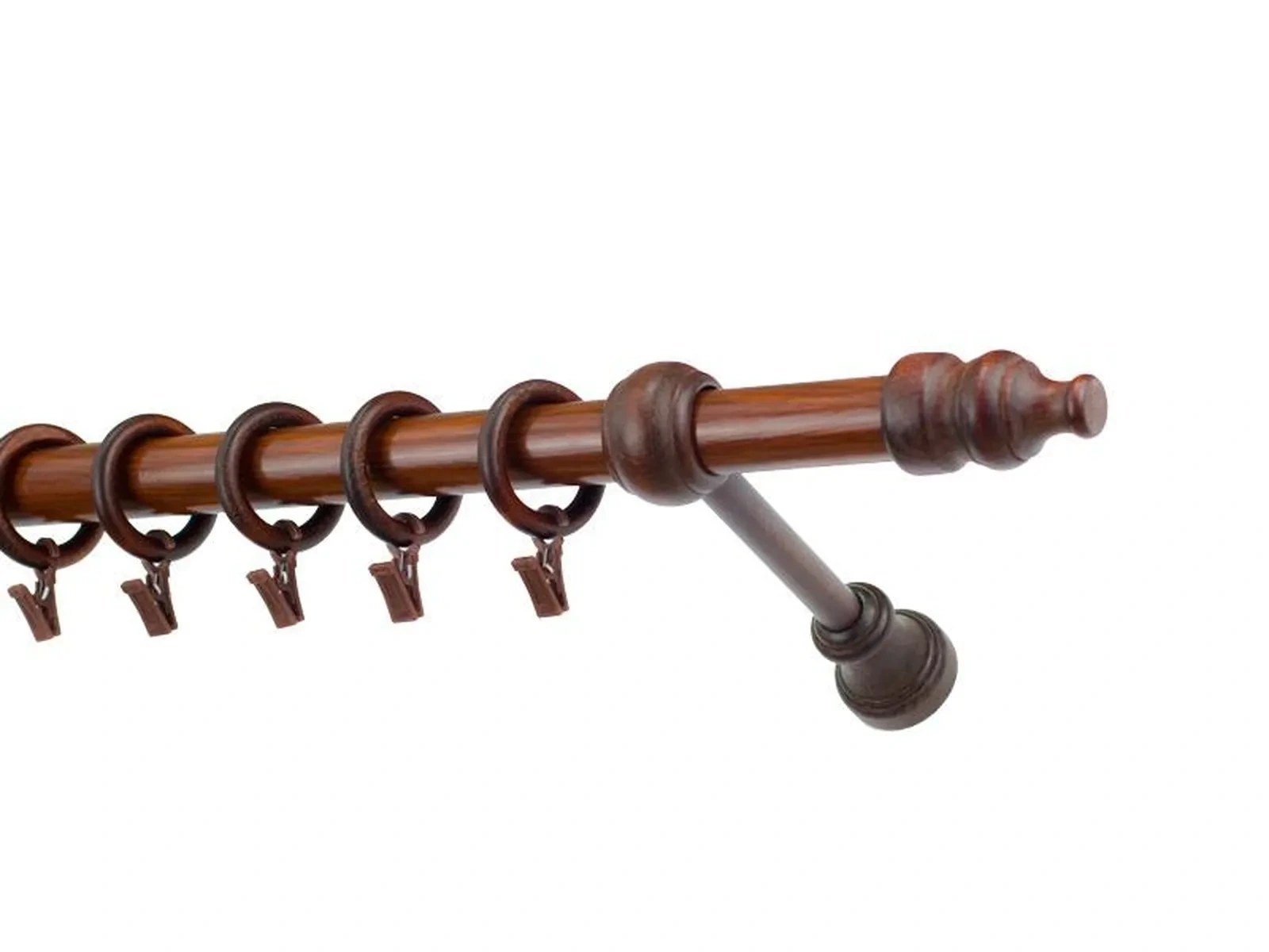 Koncovky, držiaky a krúžky sú drevené. Tyč je drevená (vyrábaná technológiou ako europrofily pre okna - čo eliminuje ohýbanie vplyvom tepla) a je potiahnutá odolnou drevoimitačnou fóliou. Dodávané sú v kompletoch.
