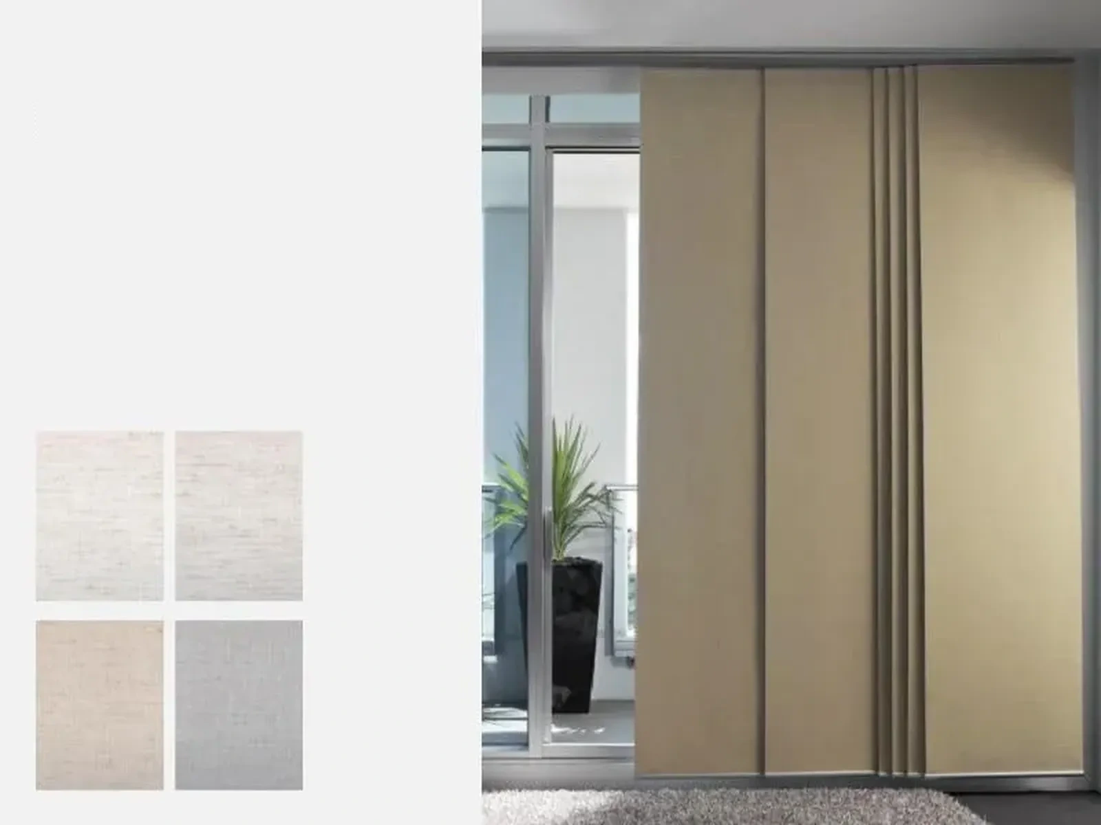 pozostávajú z garníže z vysoko kvalitného bieleho PVC s drážkami, v ktorých sa pohybujú vozíky. Ovládanie je ručné - ťahaním za látku.