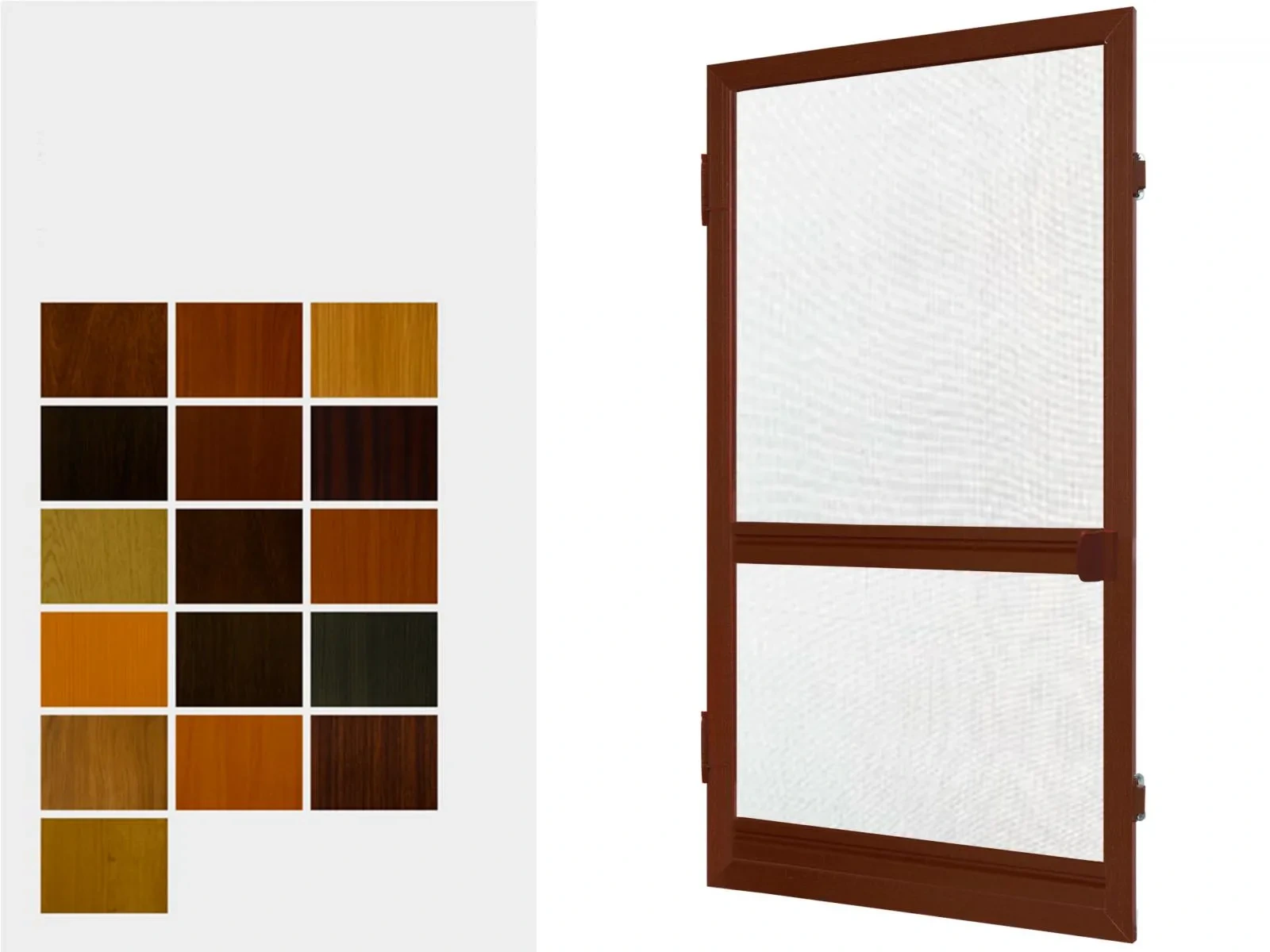 Sieťky proti hmyzu v úprave renolit sú vyrábané z hliníkového profilu, ktoré sú potiahnuté drevoimitačnou fóliou, ktorá sa používa aj pri výrobe plastových okien v drevoimitačnej úprave. Použité názvy sú originálne názvy fólií RENOLIT. Zobrazené farby sú závislé od nastavenia vášho zobrazovacieho zariadenia a môžu líšiť od skutočnosti.